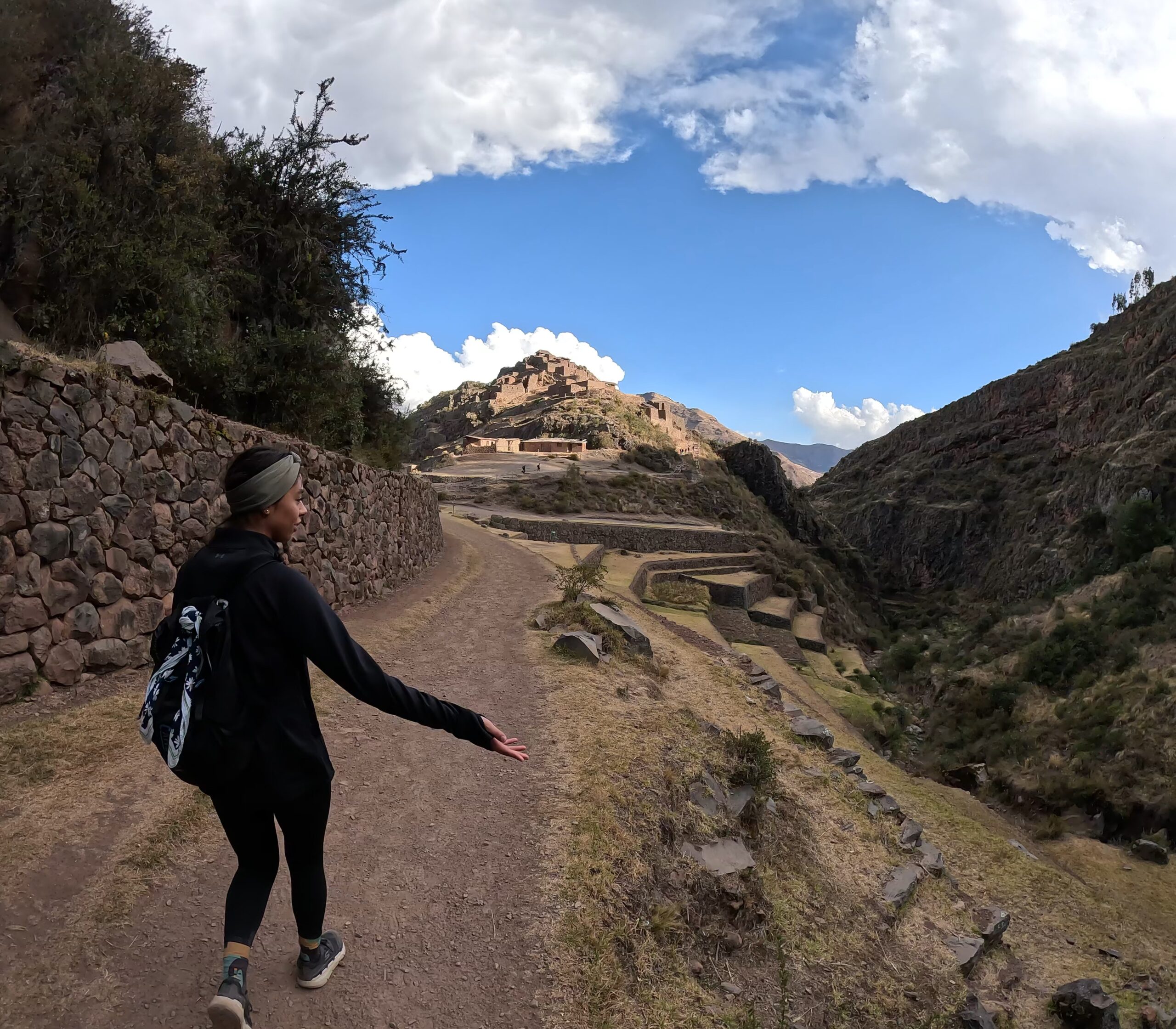 Pisac Archaeological Site probably had the best view of the three we visited. The site is set on a crest high above the valley floor. To get to the main area, you need to walk past the terraces and up some stairs.