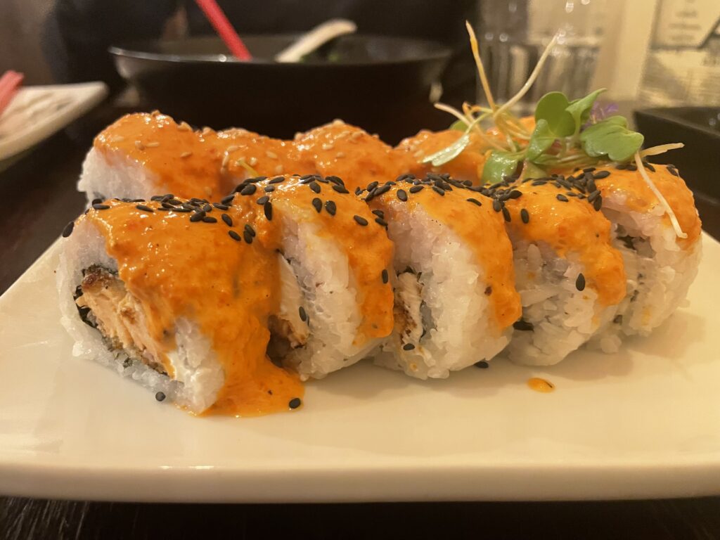 I don’t remember how we picked where to eat for dinner or where exactly we ate. That’s a shame because the sushi I ordered was incredible. We ate somewhere close to Qura (possibly at Qura, but I’m not sure). This roll is the only freshwater trout sushi I’ve had, and it was surprisingly good. The roll was smothered in a Peruvian chile sauce. It was the best sushi I had had up until I went to Japan.