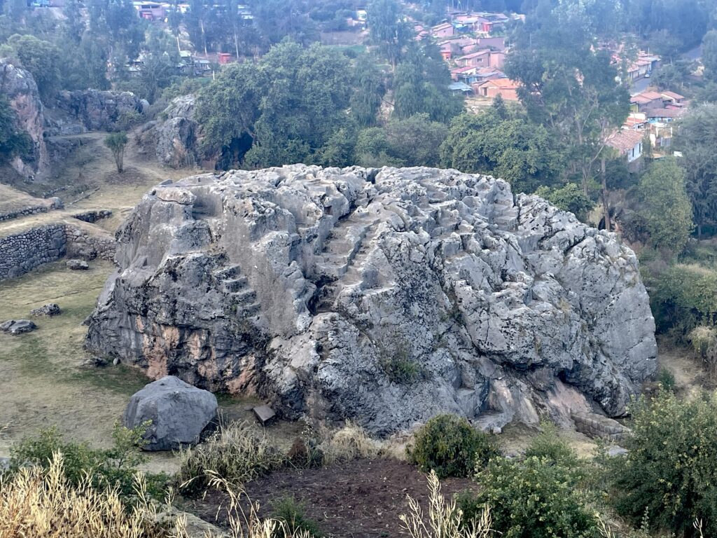 Q’enco Archaeological Complex is a ceremonial Inca site just outside Cusco, known for its massive limestone outcrop carved directly with stairways, zigzagging channels, and sculpted surfaces.