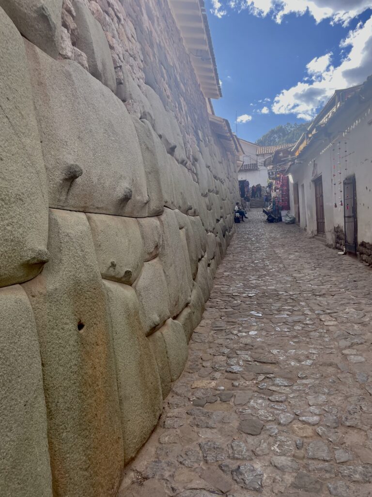 This was our first taste of the exquisite craftsmanship of Incan architecture. The stones are cut and placed so precisely that, after all this time, many stones still have perfect alignment with no gaps between stones. Famously, the gaps are so small, not even a piece of paper can fit between them.
