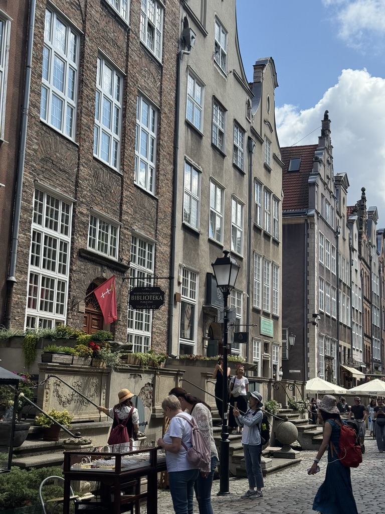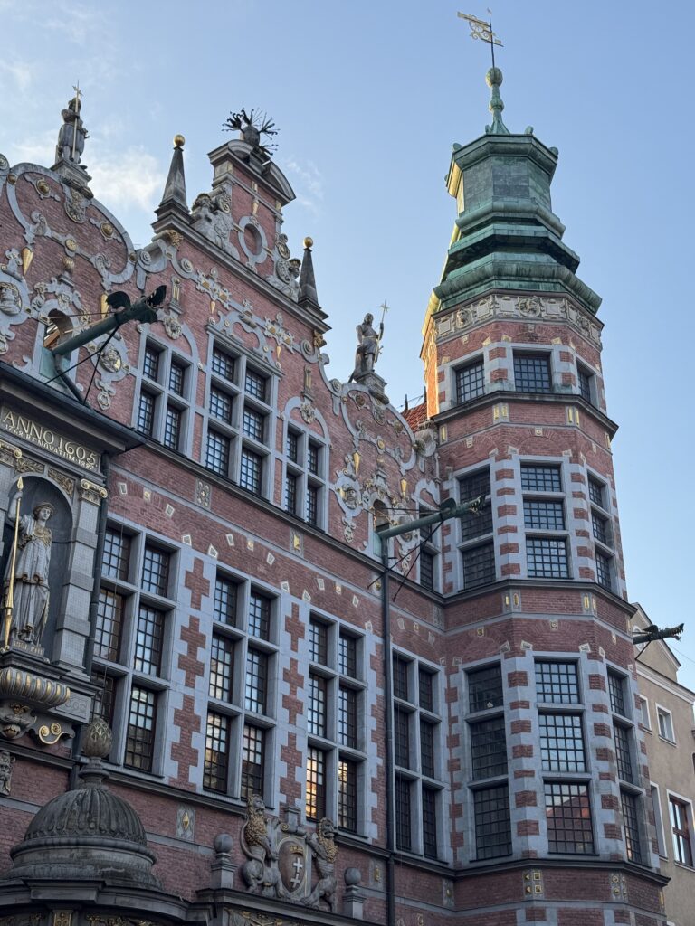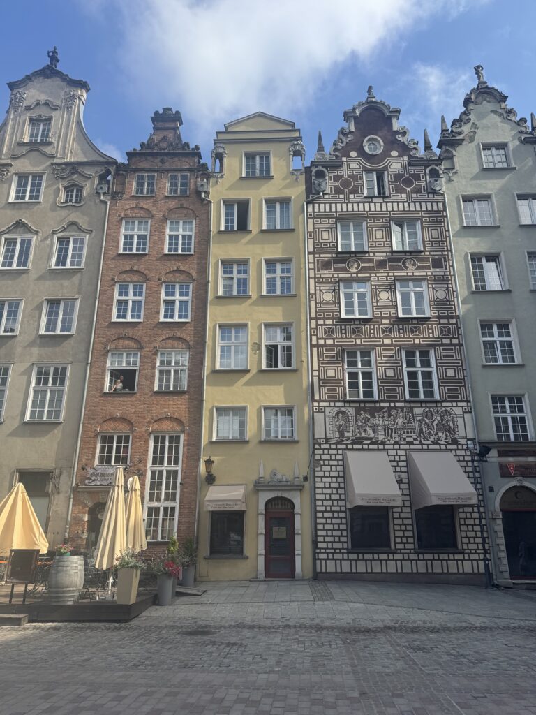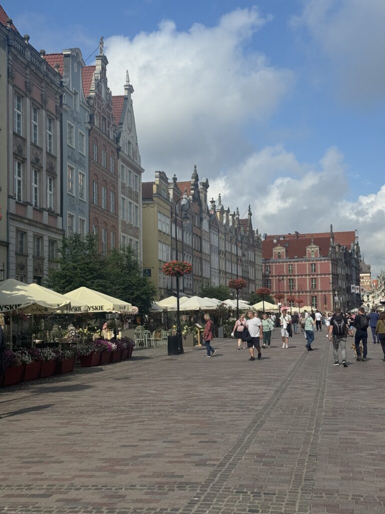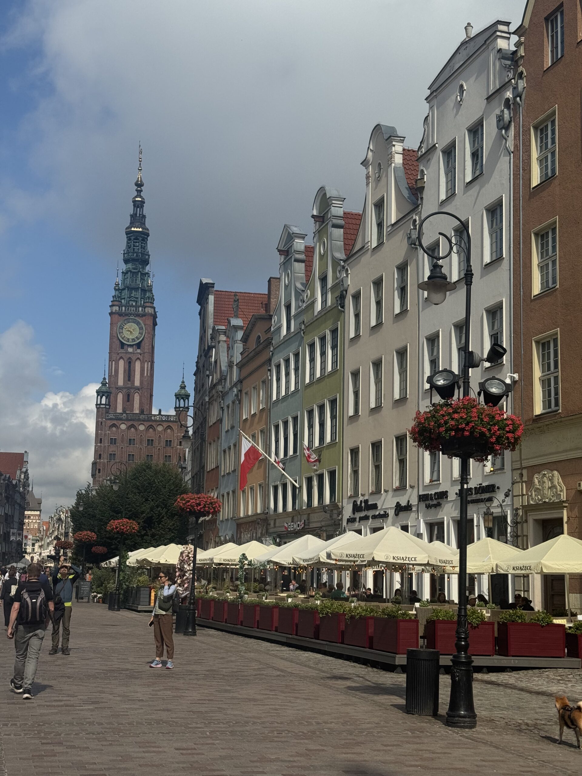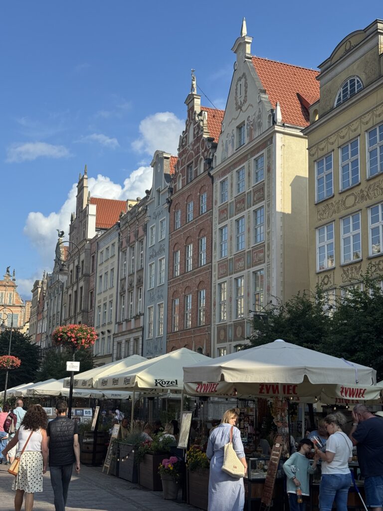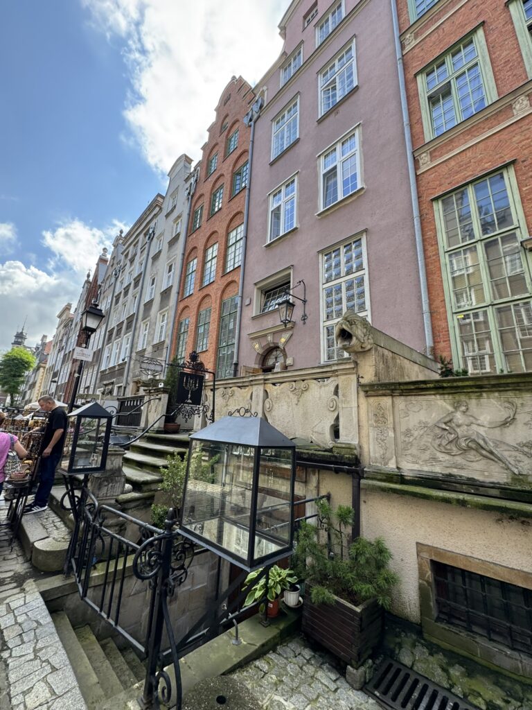 Długi Targ, or the Long Market, is the main street of Gdańsk’s Old Town. It’s lined with colorful buildings that sport Roman frescoes and statues. Wealthy merchants were part of a fad in returning to Roman iconography and art that was in vogue for the wealthy at the time. Gdańsk was largely destroyed in WW2, but the buildings have been lovingly rebuilt with the same style.