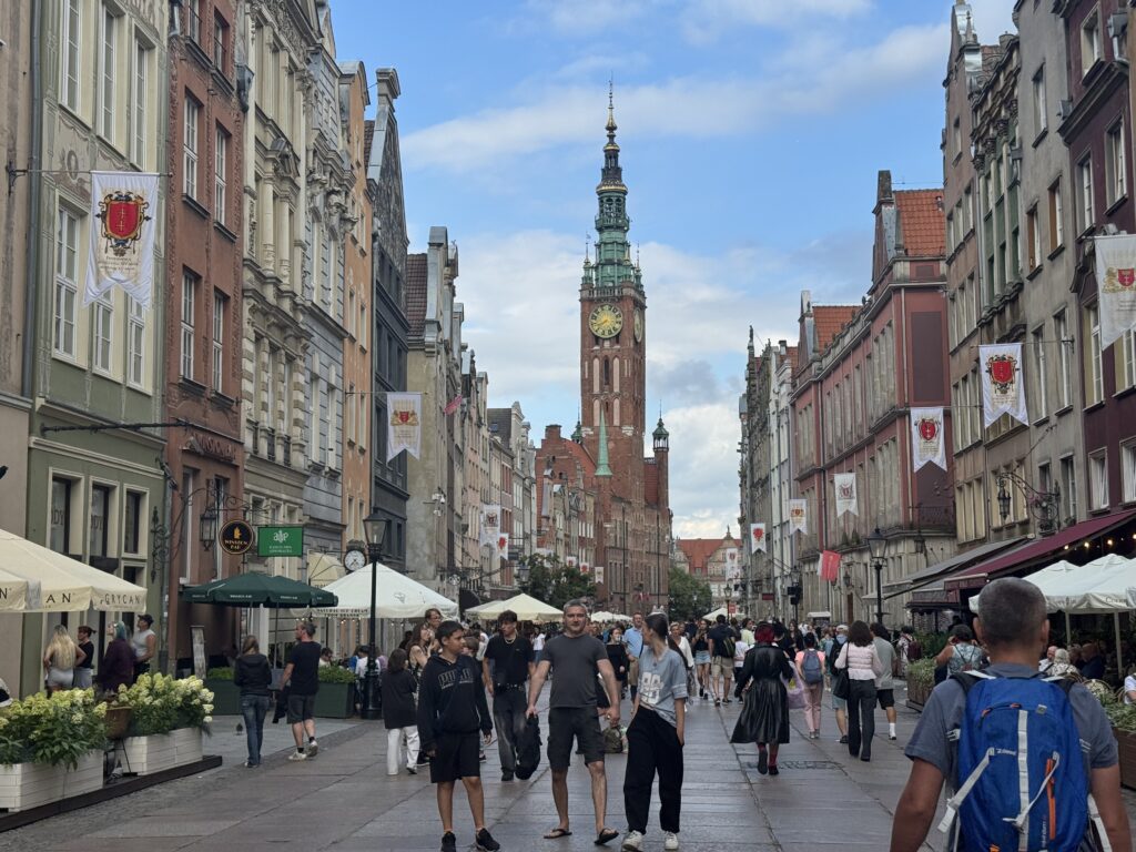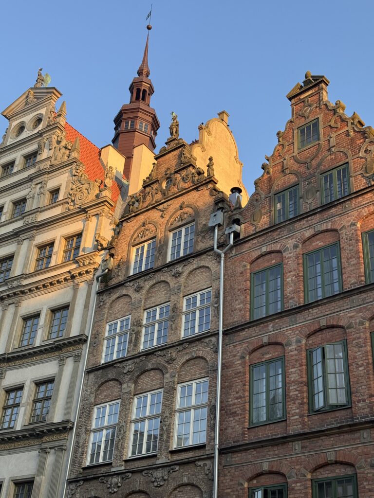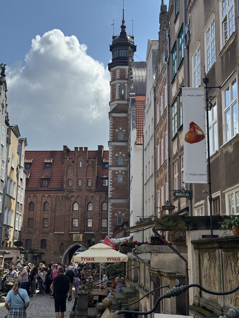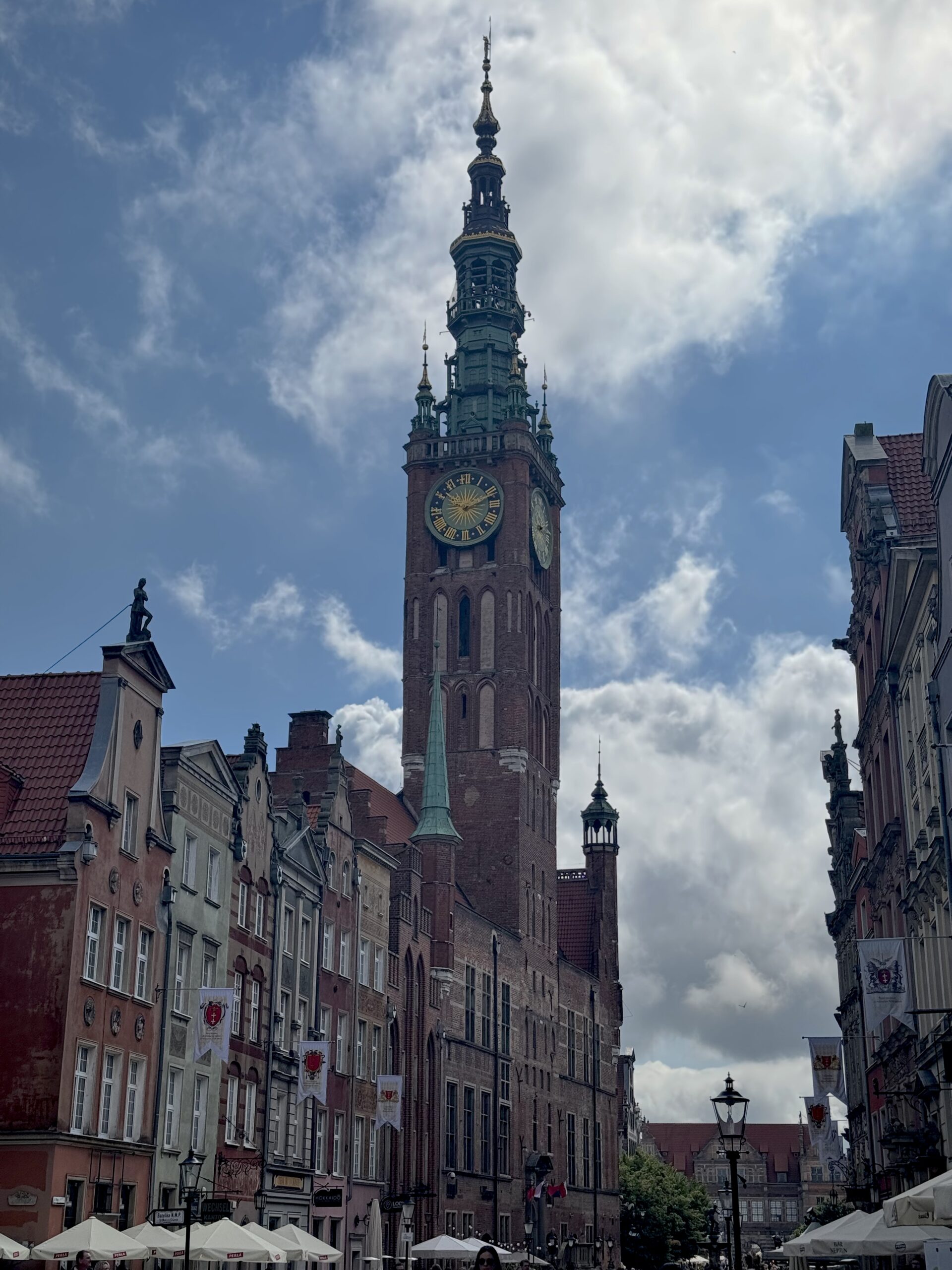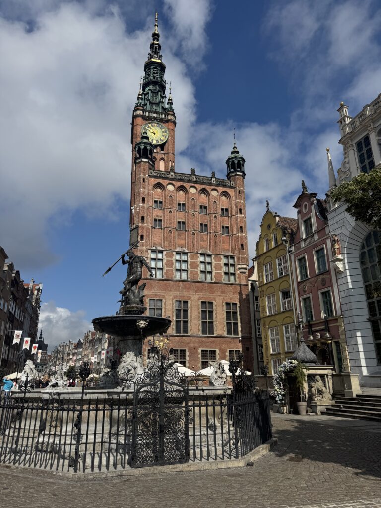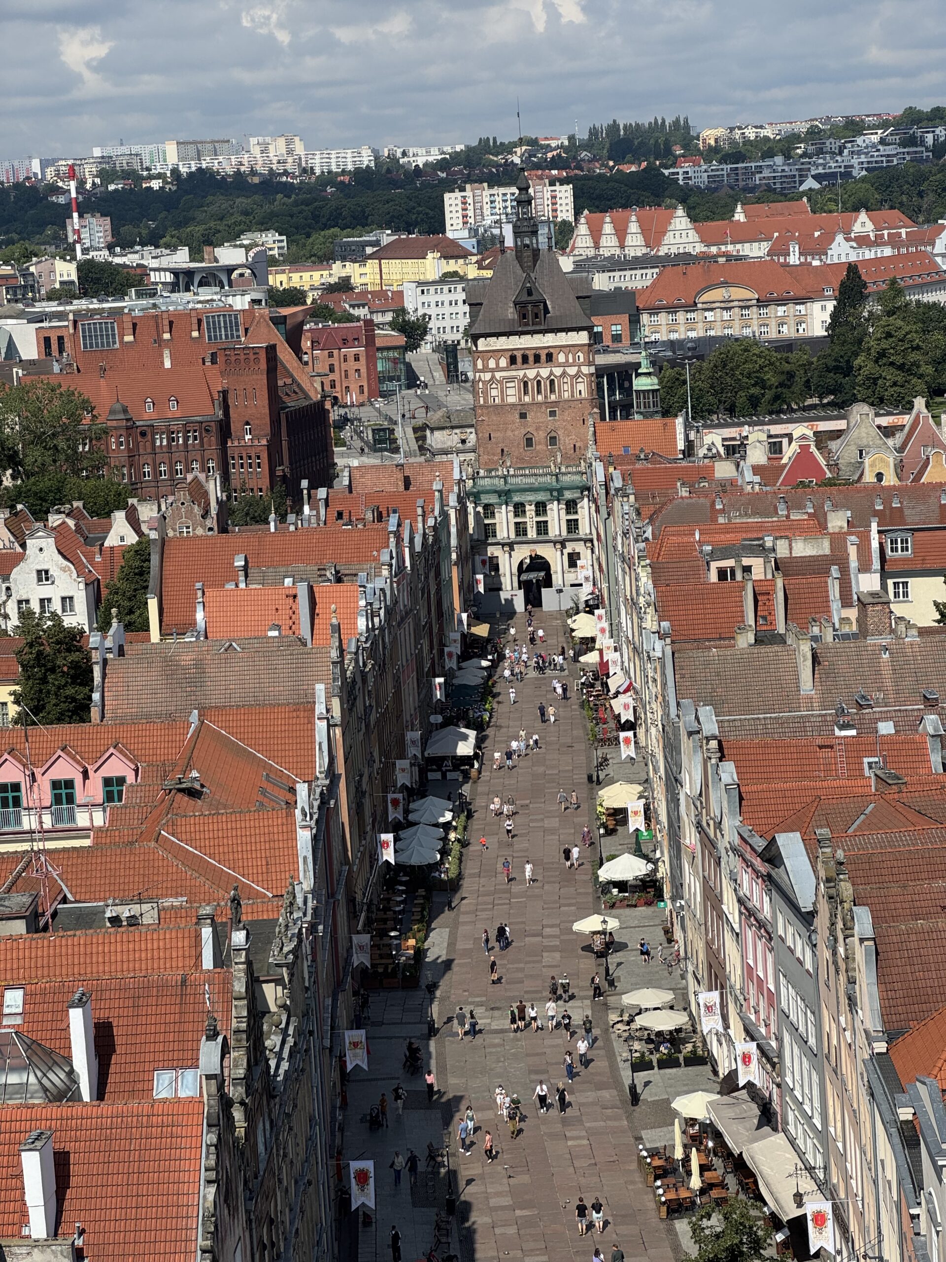 Długi Targ, or the Long Market, is the main street of Gdańsk’s Old Town. It’s lined with colorful buildings that sport Roman frescoes and statues. Wealthy merchants were part of a fad in returning to Roman iconography and art that was in vogue for the wealthy at the time. Gdańsk was largely destroyed in WW2, but the buildings have been lovingly rebuilt with the same style.