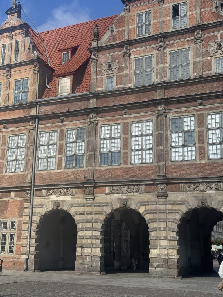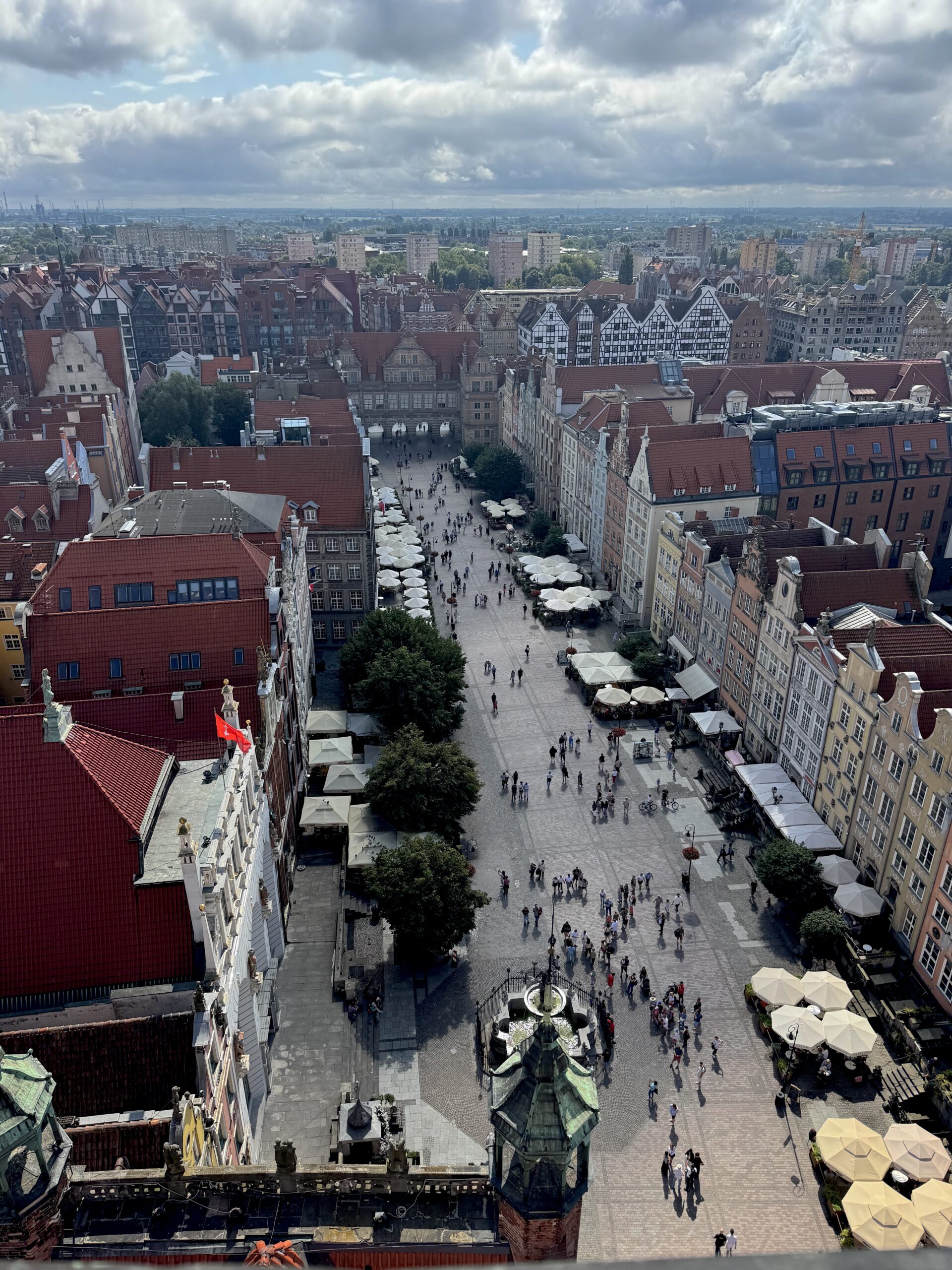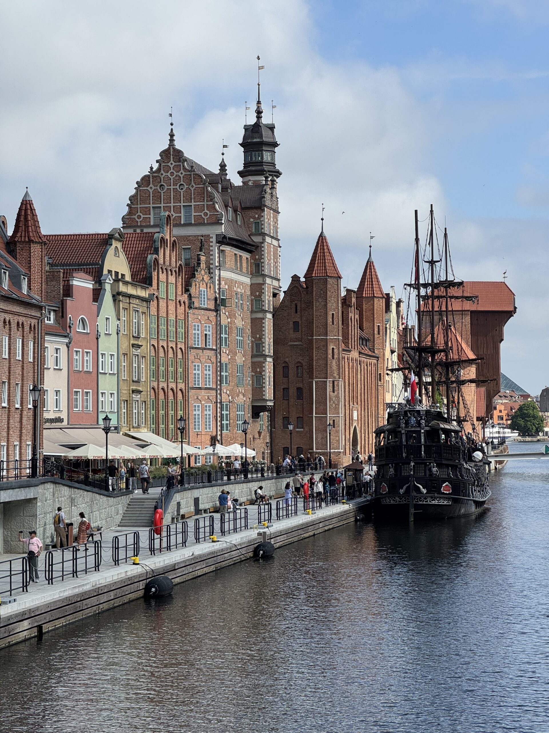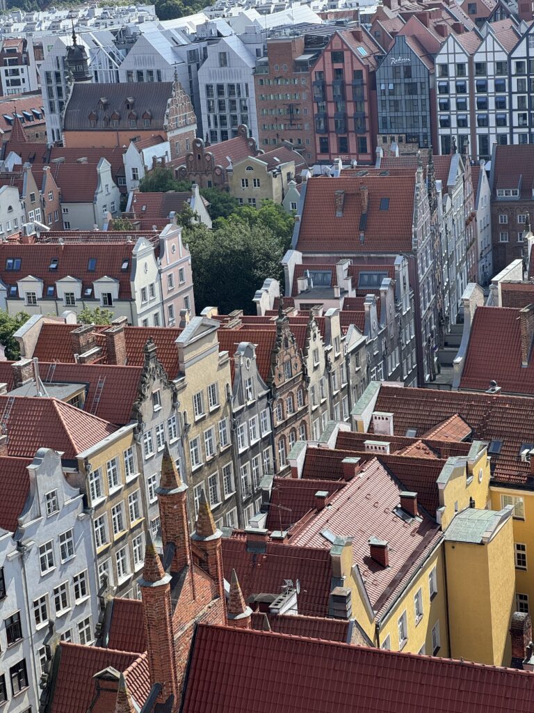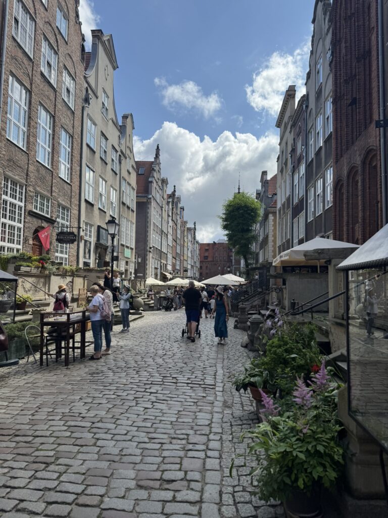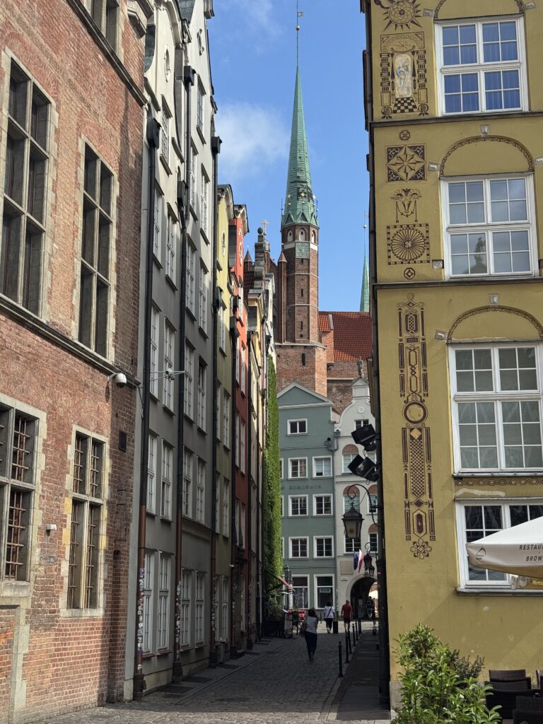 Długi Targ, or the Long Market, is the main street of Gdańsk’s Old Town. It’s lined with colorful buildings that sport Roman frescoes and statues. Wealthy merchants were part of a fad in returning to Roman iconography and art that was in vogue for the wealthy at the time. Gdańsk was largely destroyed in WW2, but the buildings have been lovingly rebuilt with the same style.