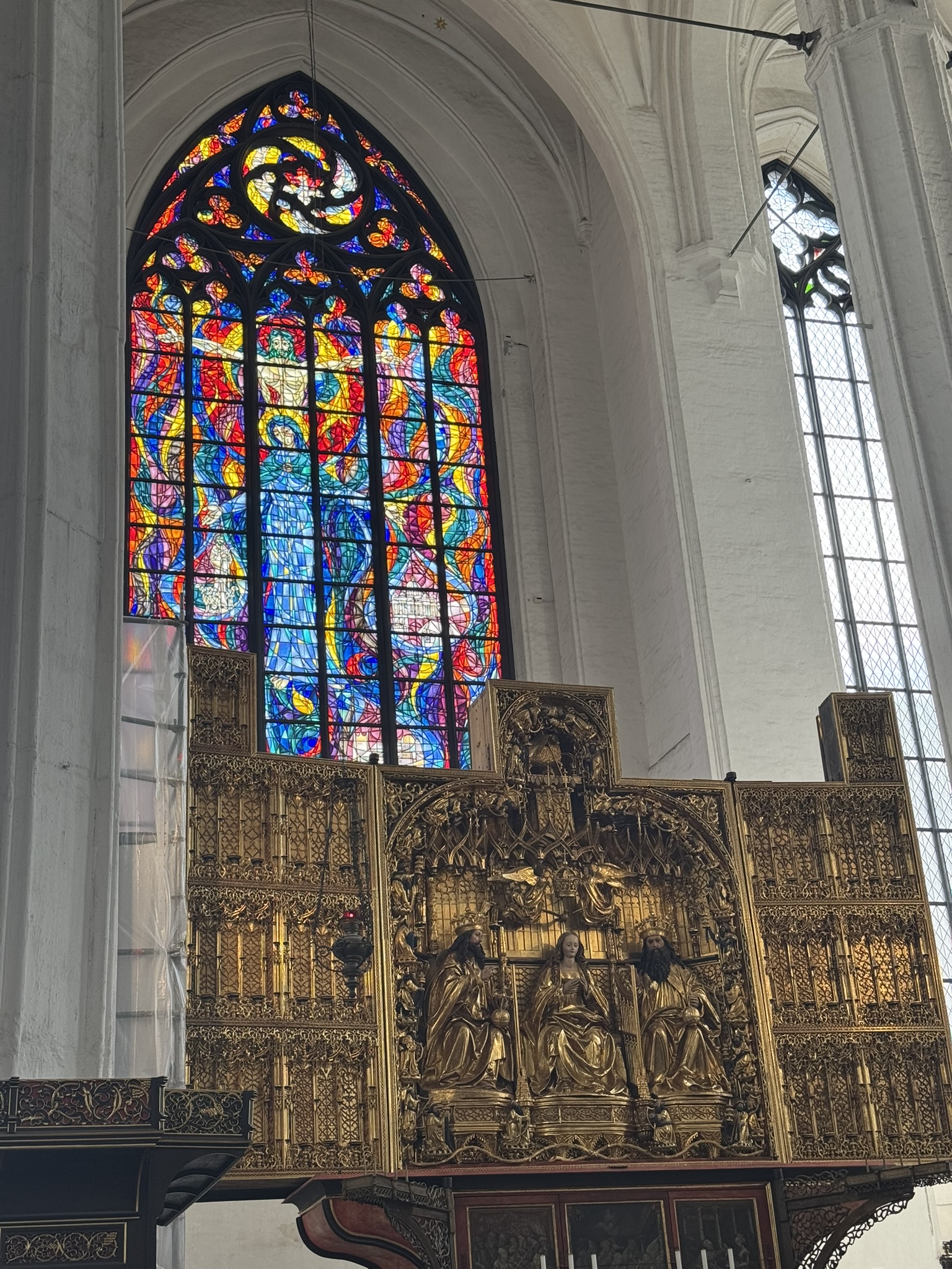 St. Mary’s Church is best viewed from the top of the Town Hall. It is one of the largest brick churches in the world and a masterpiece of Gothic architecture. Its interior is surprisingly spare in its decoration. The effect is one of light and space and room to think.