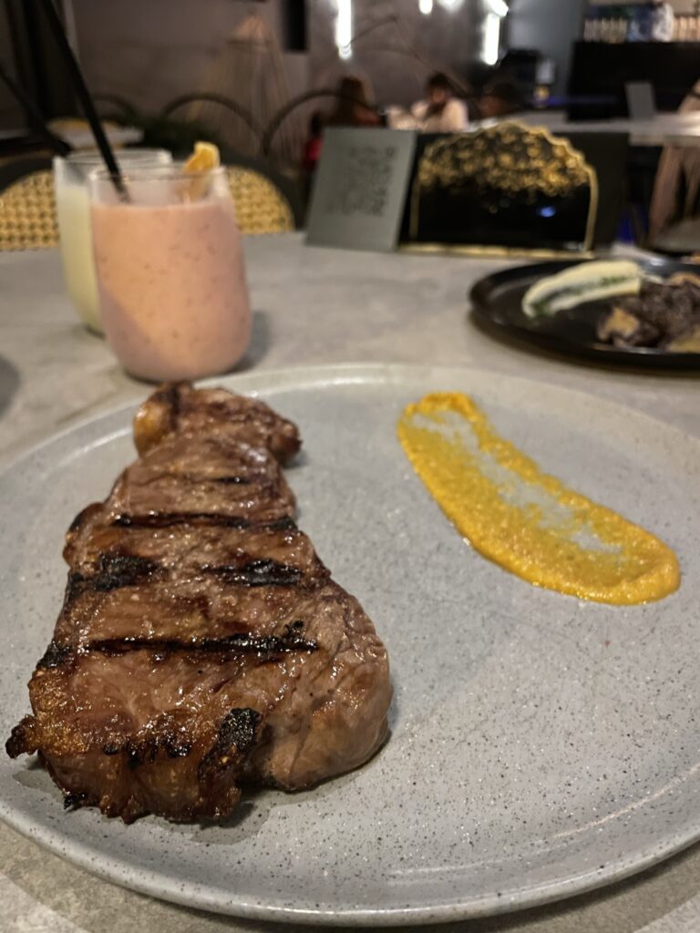 Inside is the dining room, a bar area, and a small gift shop. Walk through the building to the other side, and you’ll see where we stayed. There are a dozen or two bungalows spaced a good distance apart from one another behind the main lodge.