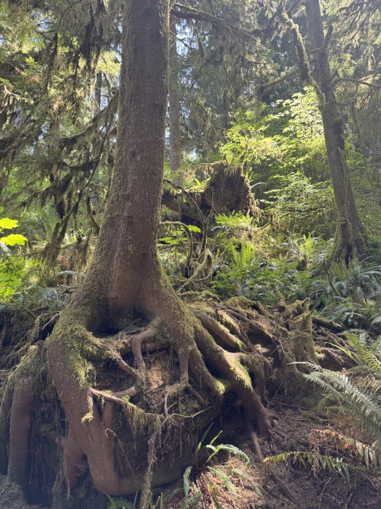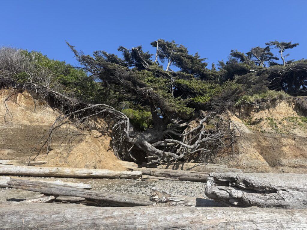 Around midday, we headed north to Kalaloch Beach to see the famous Tree of Life. Recent storms had washed away much of the soil around its roots, leaving the massive tree suspended just above the ground. It seemed like it wouldn’t take long before it comes down.