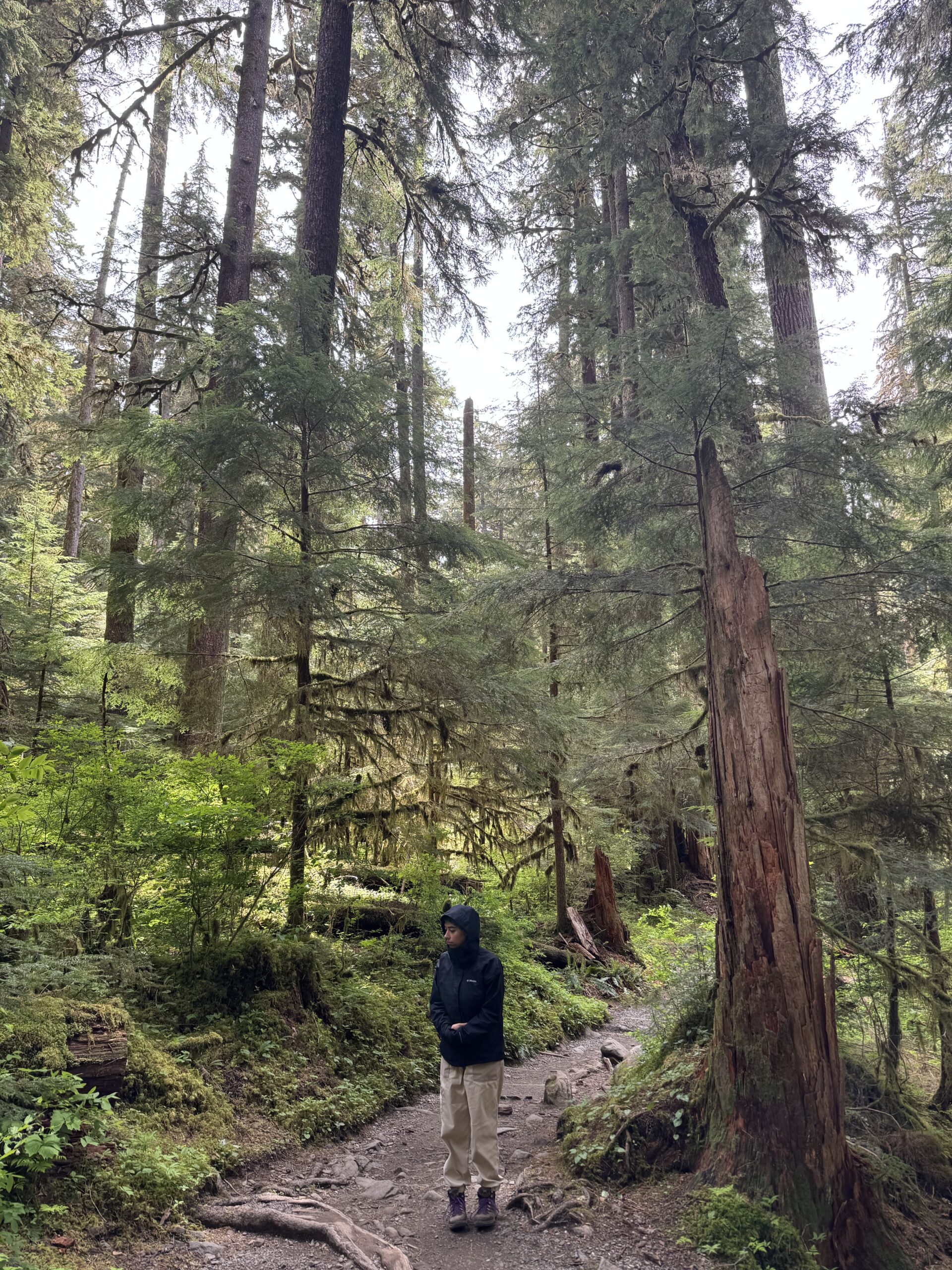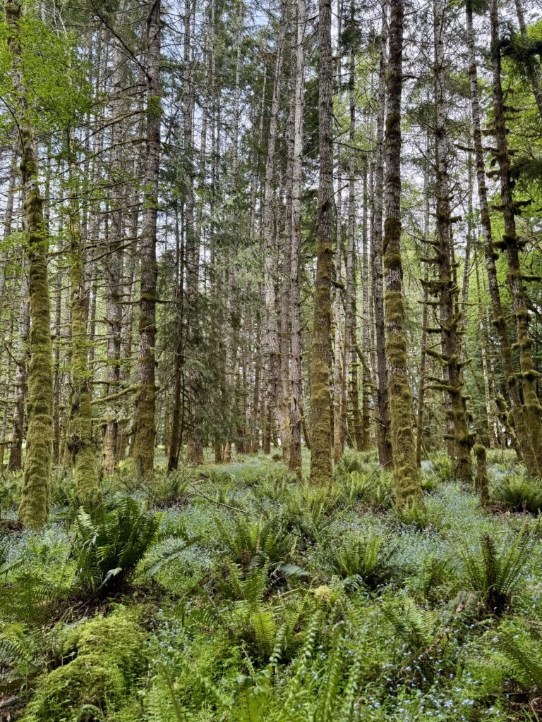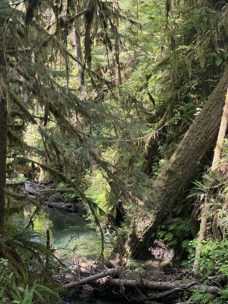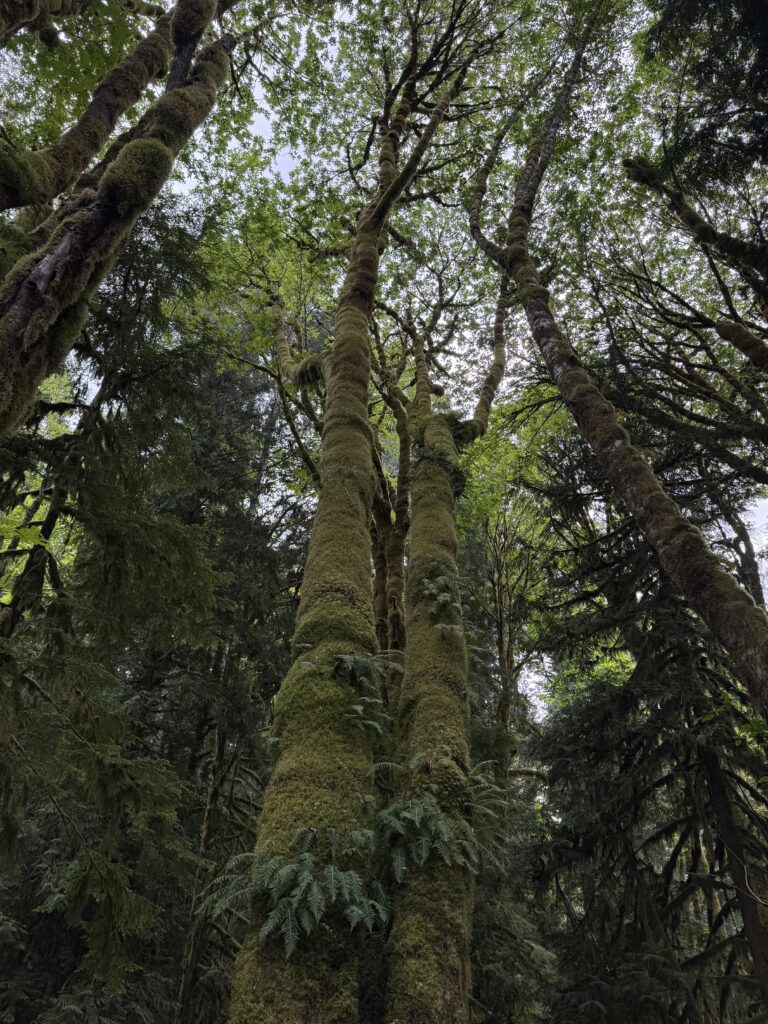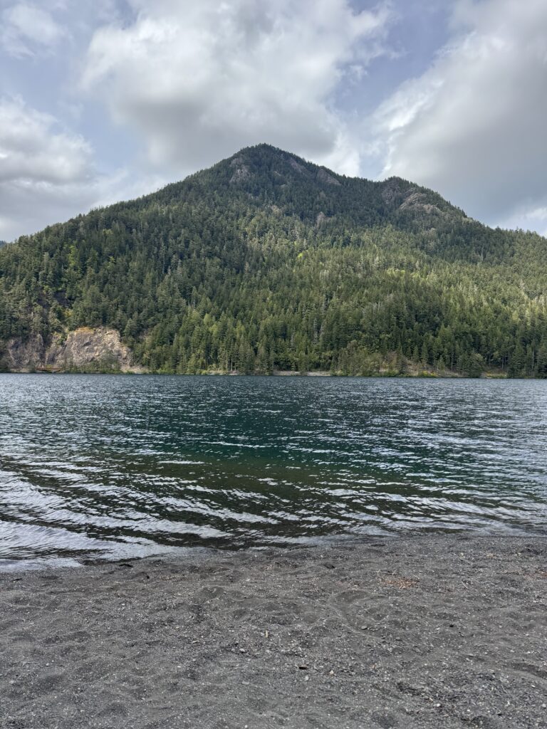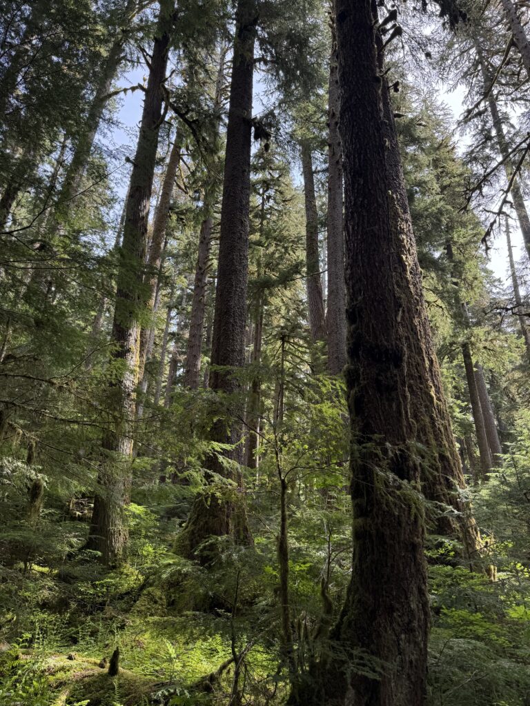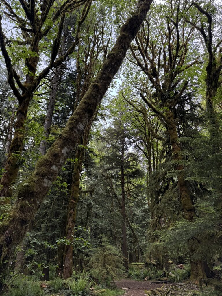 The next morning, we drove roughly three hours from Puyallup to Lake Quinault Lodge and started with the Quinault Rainforest Trail. The hike was short but incredibly dense and green, with towering trees, thick ferns, and mushrooms scattered everywhere along the forest floor. There were very few people on the trail, which made it feel quiet and immersive. It ended up being one of our favorite walks of the entire trip.