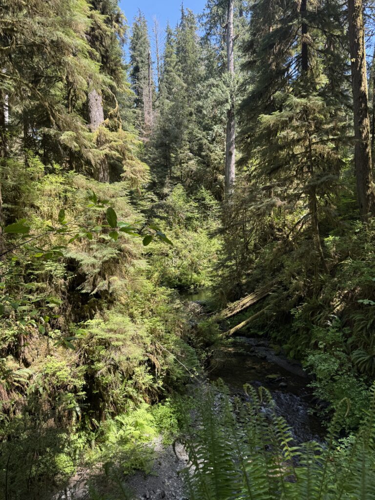We followed trail signs to Marymere Falls. Indi and I find waterfalls to often be anticlimactic, so we did not stay long. It really do be about the journey, not the destination.