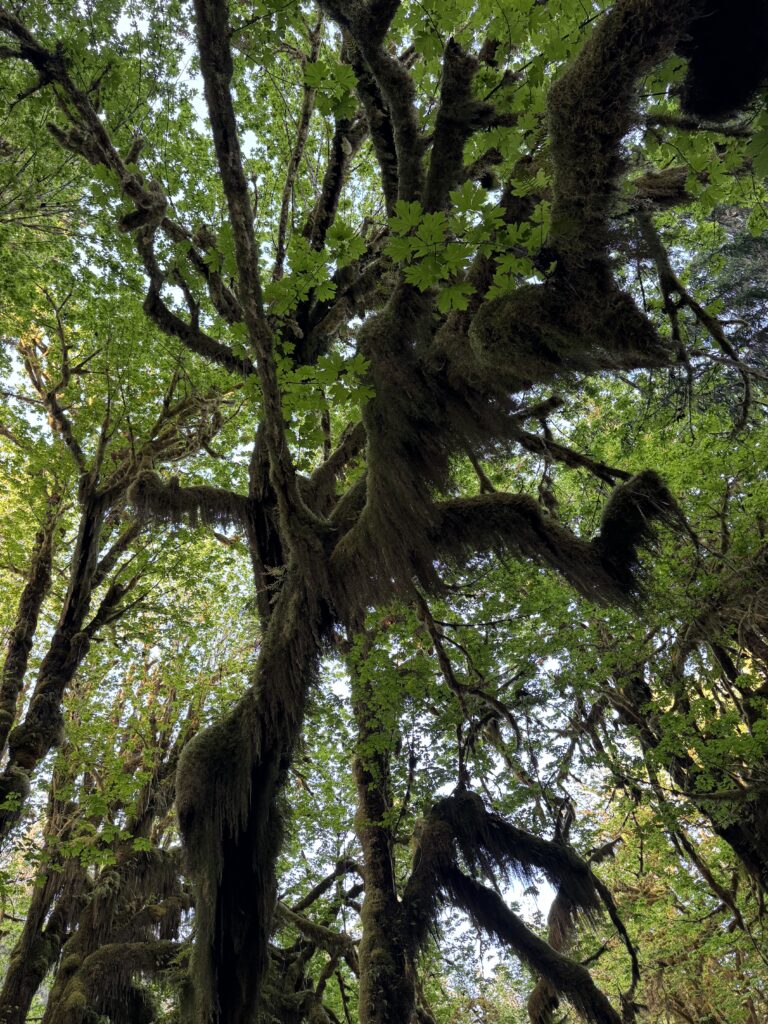 Later in the afternoon, we drove about an hour to the Hoh Rainforest and walked the Hall of Mosses Trail. The trail is aptly named. The trees were completely coated in thick, green moss. It’s a short walk and was pretty crowded, but I think it’s worth doing once.