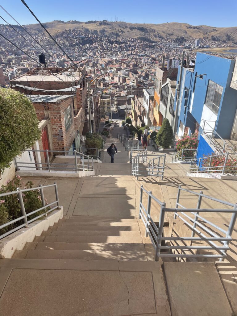 From Plaza Mayor, I walked 20 or 30 minutes to Mirador El Condor. To get there, you need to climb up 600-700 steps. The hundreds of steps plus the altitude make for a lot of huffing and puffing.