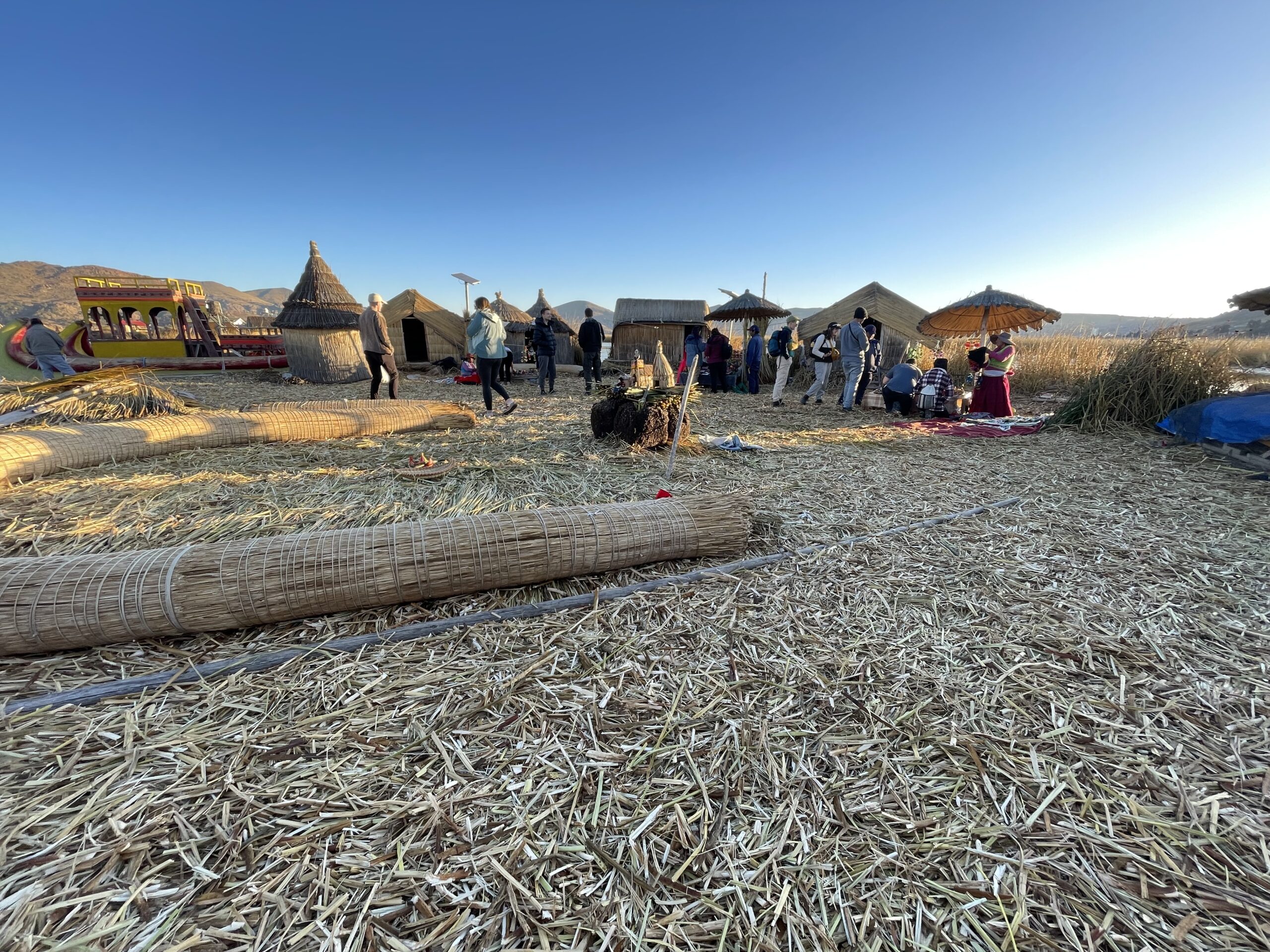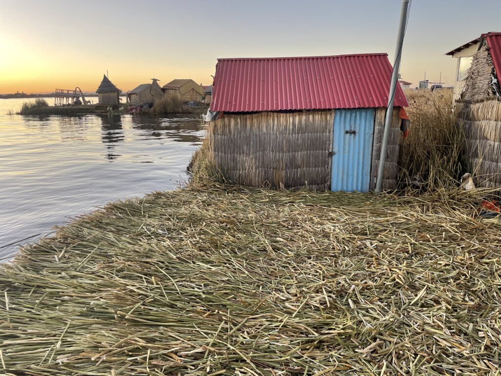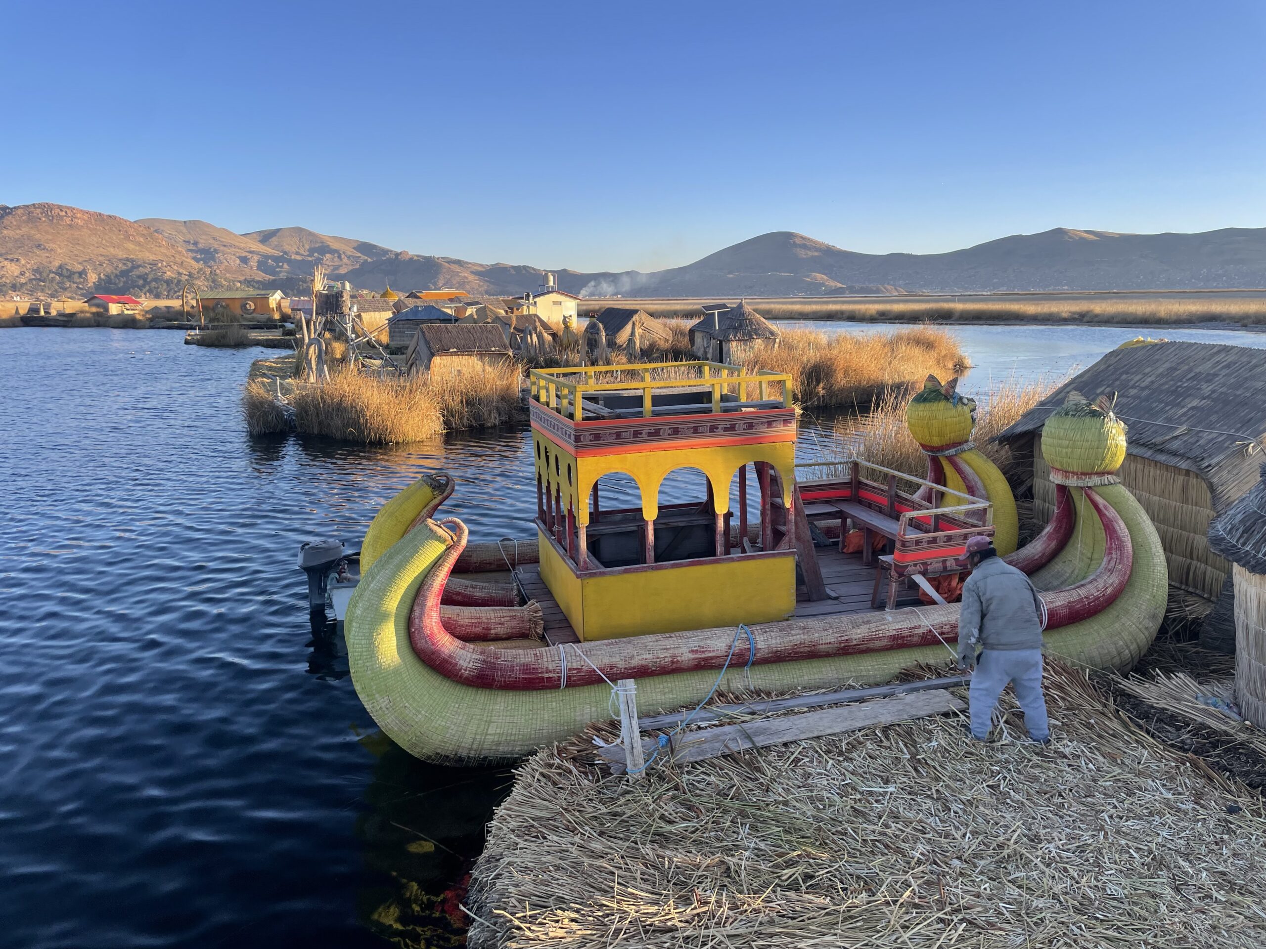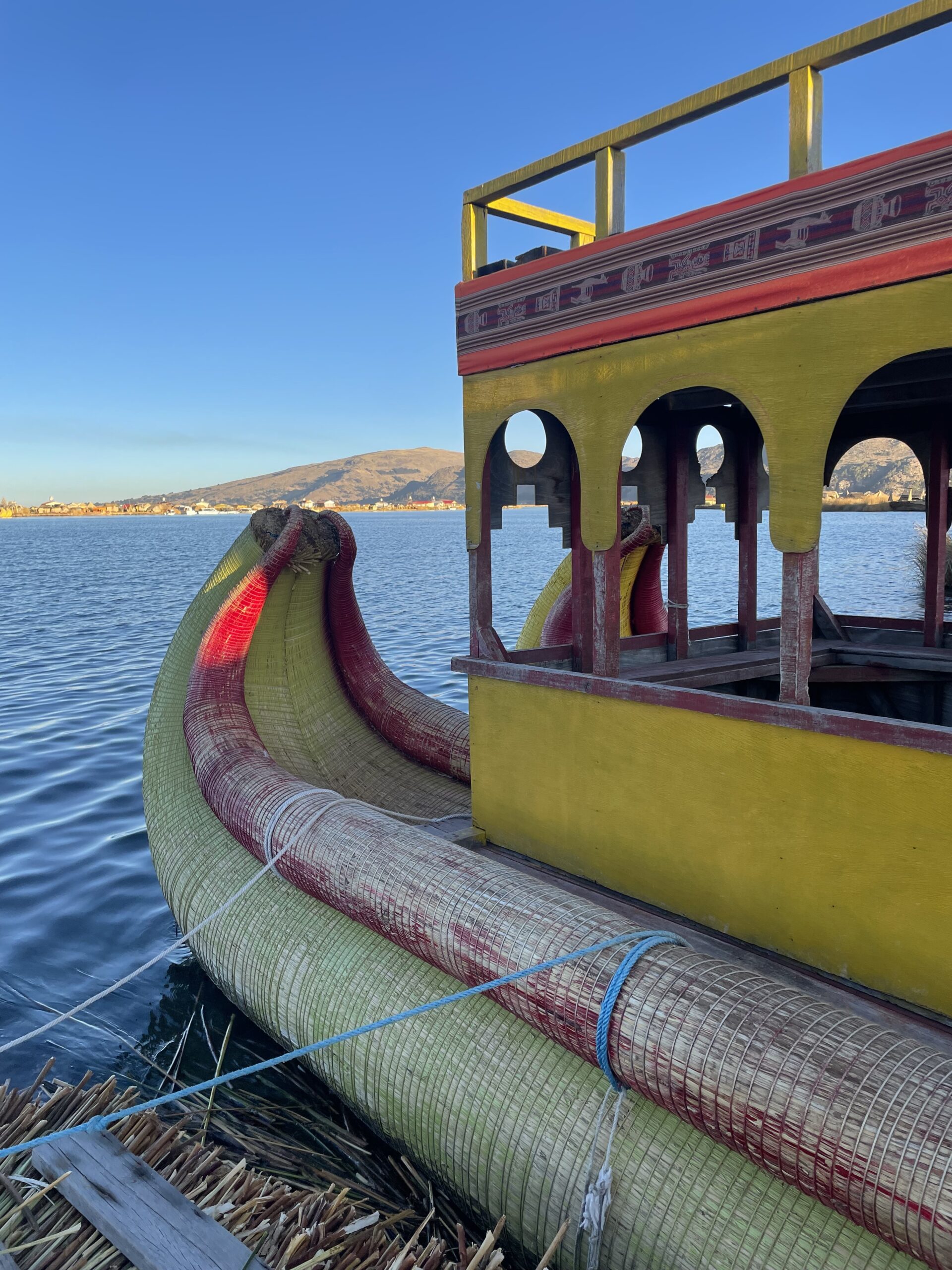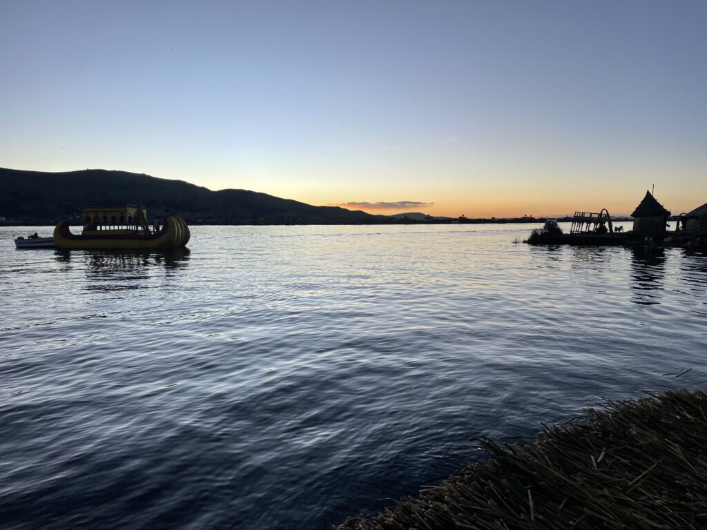 I descended the stairs and made it to the lakeside port in time for a sunset boat tour. I was hot from the climb and decided not to bring a jacket. It was a bad move. We sailed down a long channel, which led to a small natural channel where the Uros people live on their floating islands.