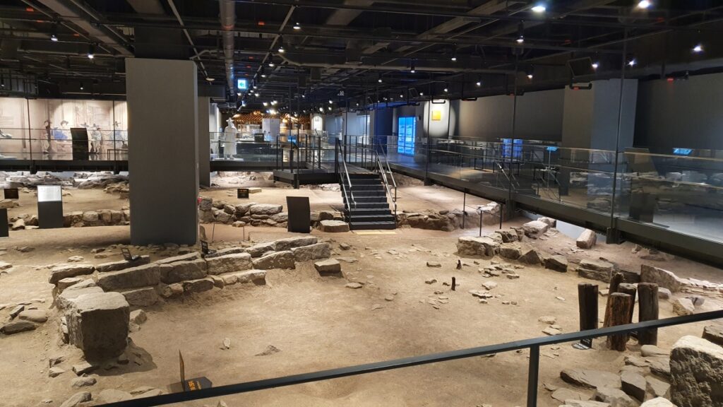 On the way there, Indi spotted a museum – Gongpyeong Historic Sites Museum. We diverted to check it out. It turned out to be the ruins under a skyscraper that were found when digging deeper to create deeper foundations for taller buildings. It was much bigger than expected and pretty cool, especially considering it is free.