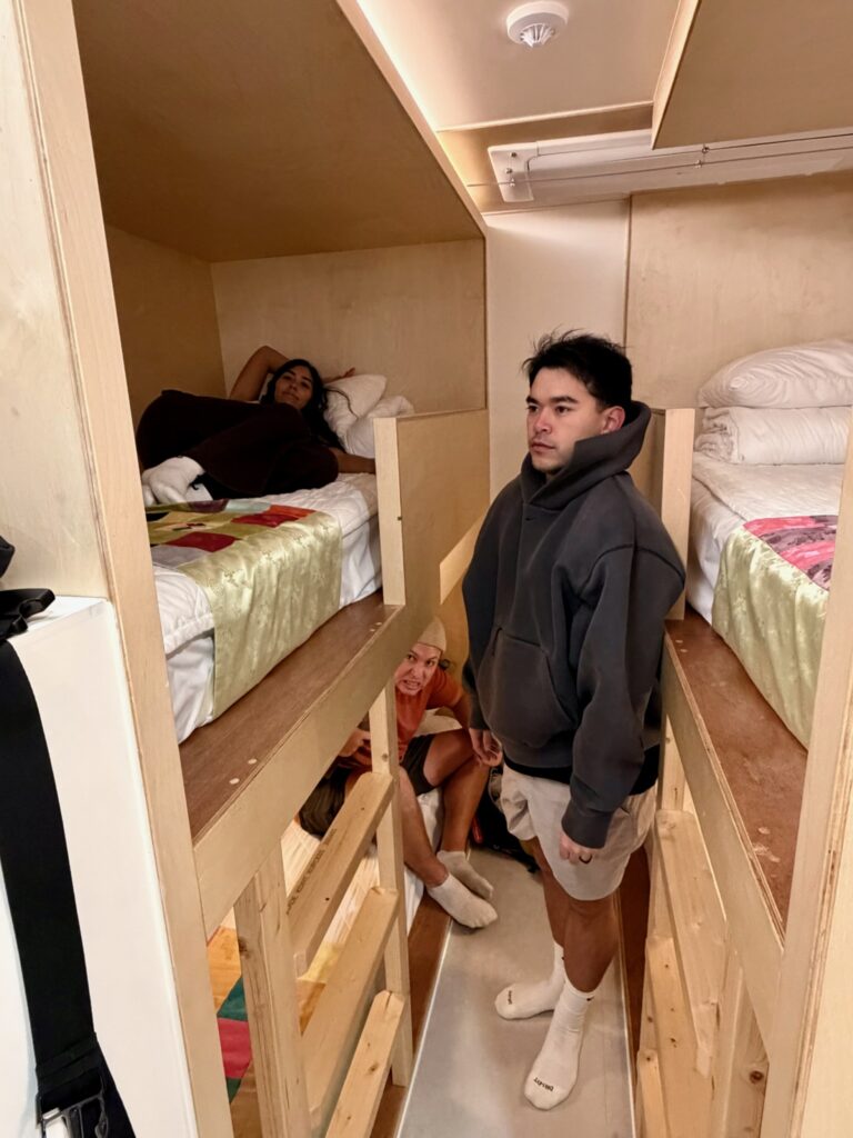 Our Airbnb turned out to be incredibly small. It consisted of a living/kitchen area with a table and a couple of stools that one person could comfortably stand in at a time, a tiny wet bathroom, and two bunk beds 2 feet apart made out of plywood and 2×4’s. The beds were rock hard – the hardest yet, and that’s saying something. Futons are more comfy. It was the second-worst place I slept on the trip. *foreshadowing next post*
