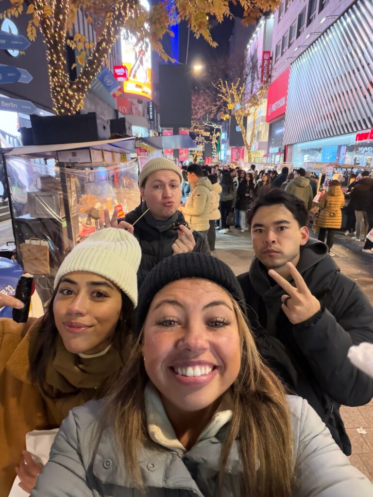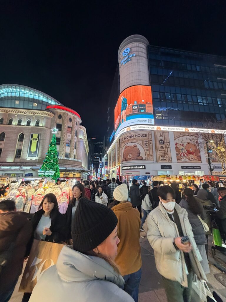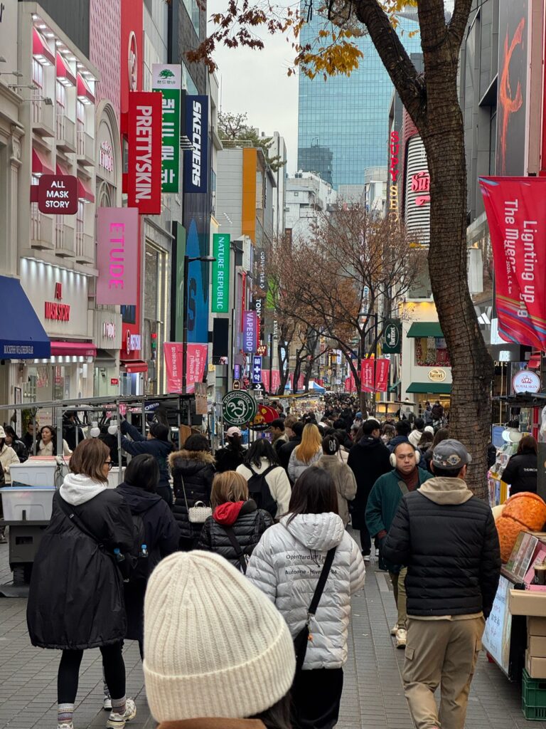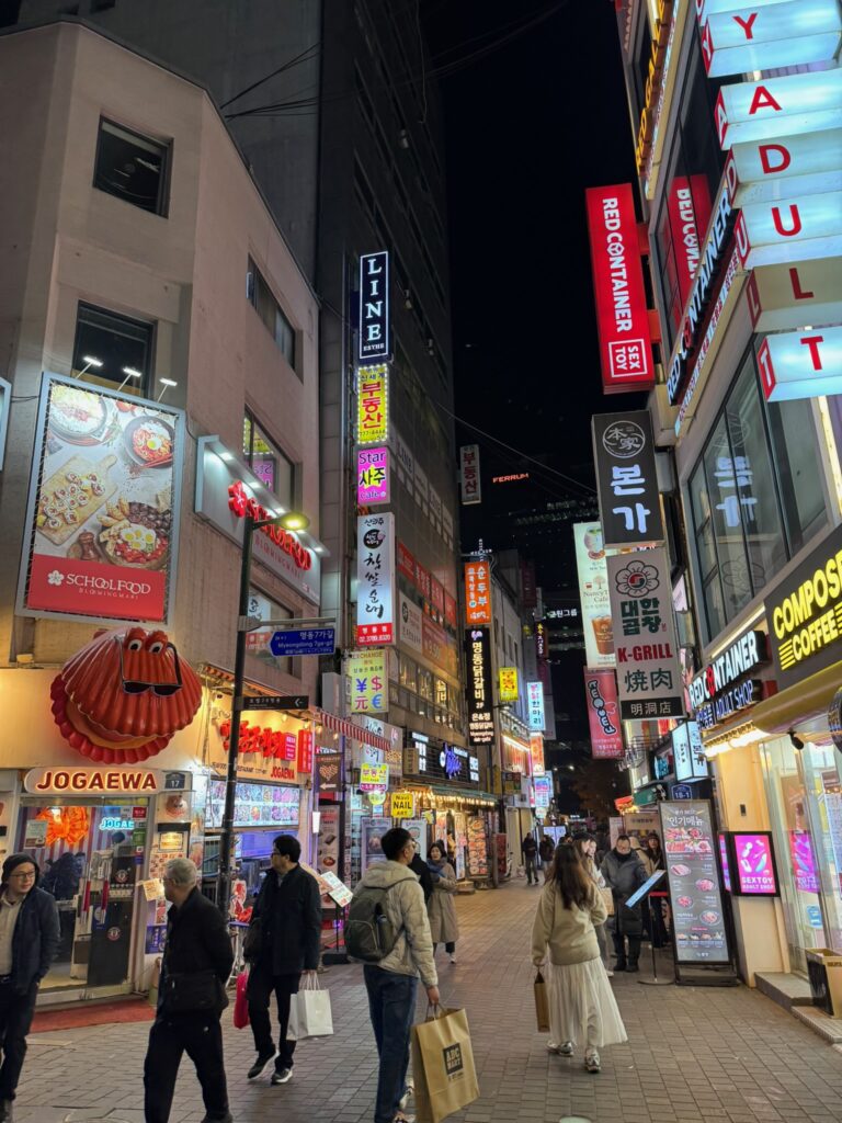 We made our way back to the Myeong-dong area for our appointment. Shopping on Myeong-dong Street, Jonny stumbled upon a med spa. Indi made an appointment for a consultation for all of us. Instead of an individual consultation, we were led into a tiny room as a group. They had to bring in an extra chair, which barely fit. We were then told one by one the major issues with our faces. That public humiliation was a wake-up call. I have sworn that in 2026, I will dedicate my life to looksmaxxing. We all ended up getting something because, apparently, it’s much cheaper in South Korea than in the US. I got some Botox and two facial treatments for about $150 USD. It felt like it took a long time, but I was told I was glowing afterwards.