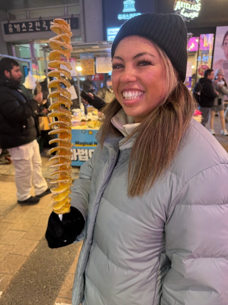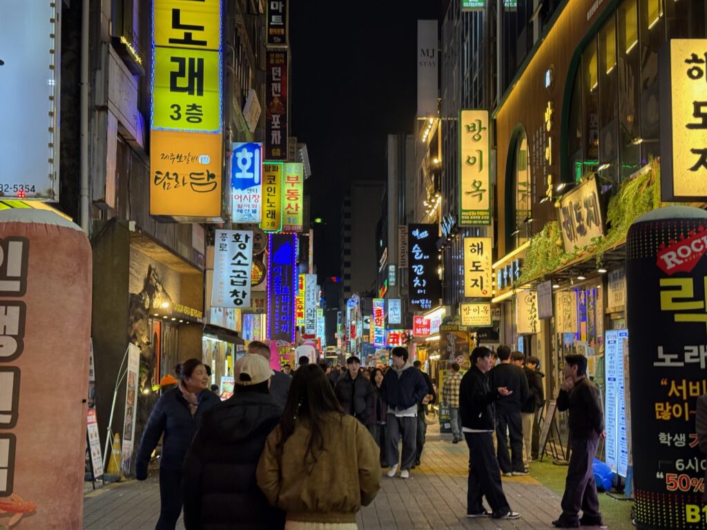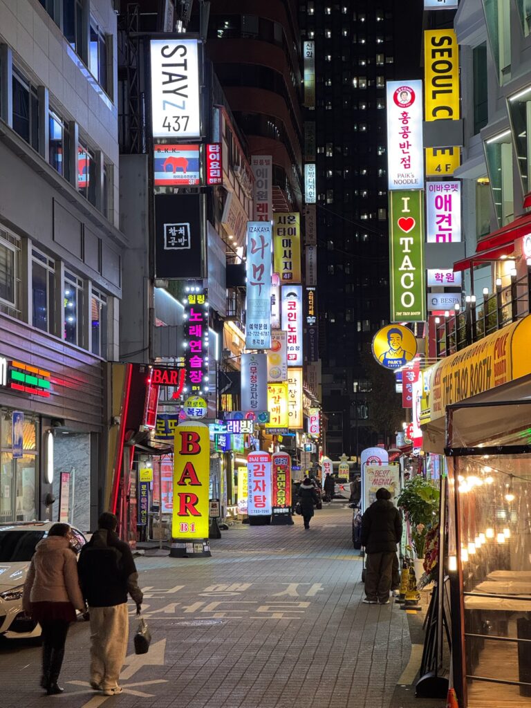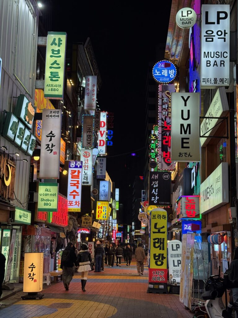 We made our way back to the Myeong-dong area for our appointment. Shopping on Myeong-dong Street, Jonny stumbled upon a med spa. Indi made an appointment for a consultation for all of us. Instead of an individual consultation, we were led into a tiny room as a group. They had to bring in an extra chair, which barely fit. We were then told one by one the major issues with our faces. That public humiliation was a wake-up call. I have sworn that in 2026, I will dedicate my life to looksmaxxing. We all ended up getting something because, apparently, it’s much cheaper in South Korea than in the US. I got some Botox and two facial treatments for about $150 USD. It felt like it took a long time, but I was told I was glowing afterwards.