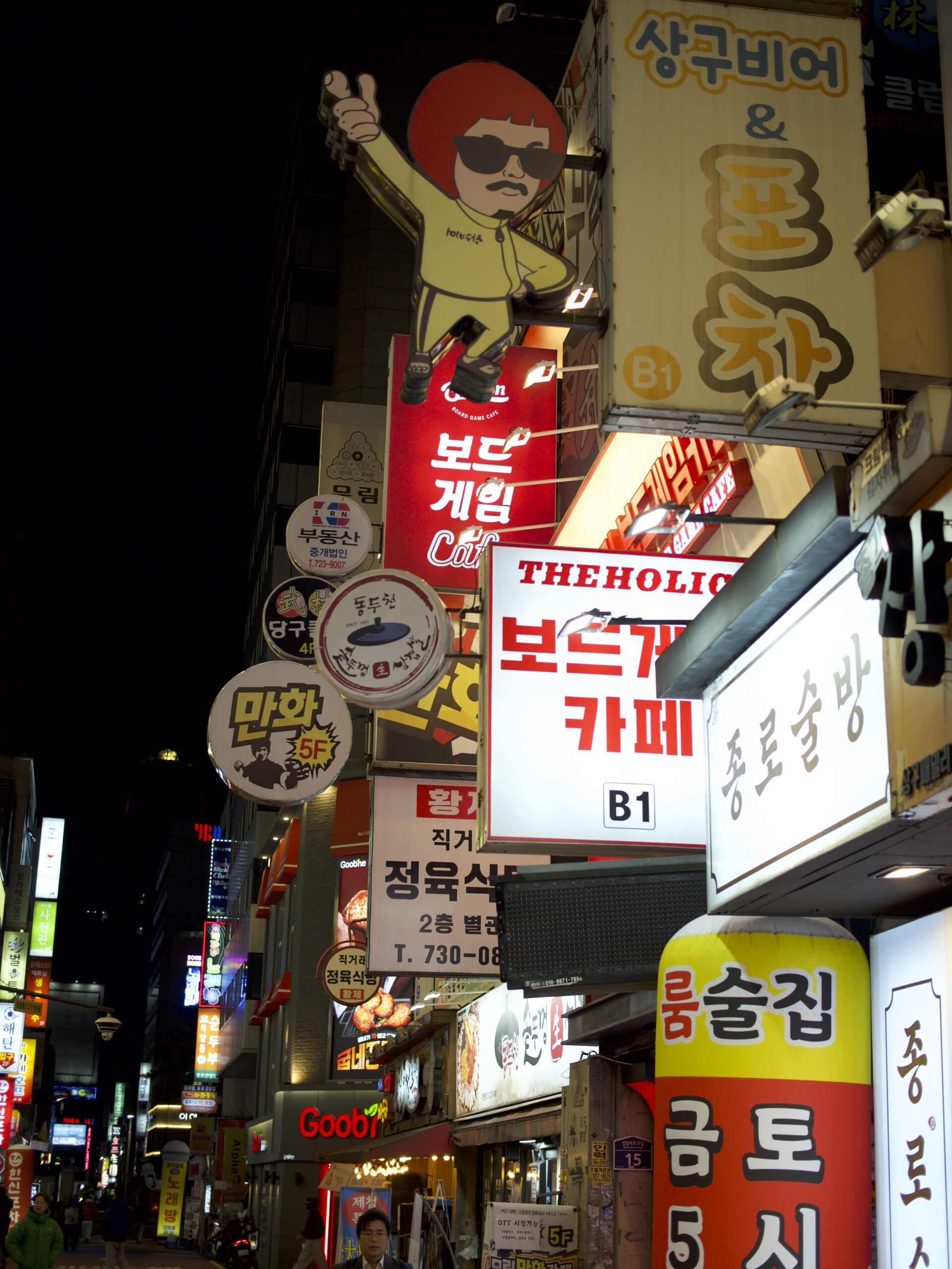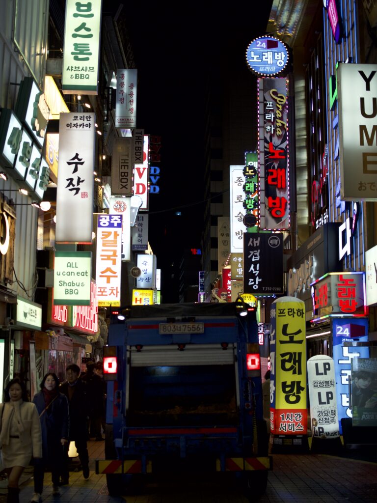 After dinner, we walked down streets with a lot of foot traffic, exploring the city. While walking, the Korean Denny’s food triggered something diabolical in my bowels. I frantically searched the surrounding businesses for a bathroom with no luck. I entered a state of desperation, and shop after shop turned me away. I became nonverbal as I diverted all my faculties to send strength to my besieged sphincter. The neon lights around me began to blur. My mind drifted. Just as I was ready to accept my fate, Indi pointed out an arcade. I waddled inside. My waddle turned into a run when I saw the bathroom door. I barely made it in time. I had gone clammy and completely nonverbal before closing the dirty stall door with my shaking hands. Apparently, someone else had also narrowly avoided tragedy in the same one-stall bathroom just before I entered. But, instead of eating a pork cutlet, they had gorged themselves at an all-you-can-eat seafood buffet. Still, all I felt was gratitude.