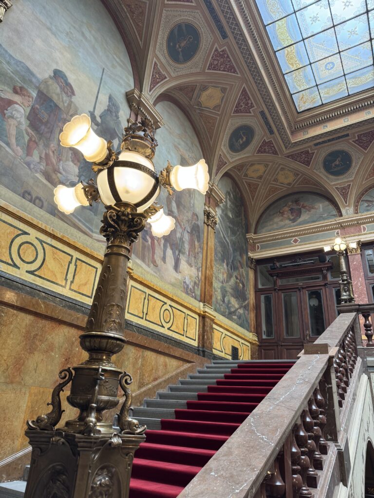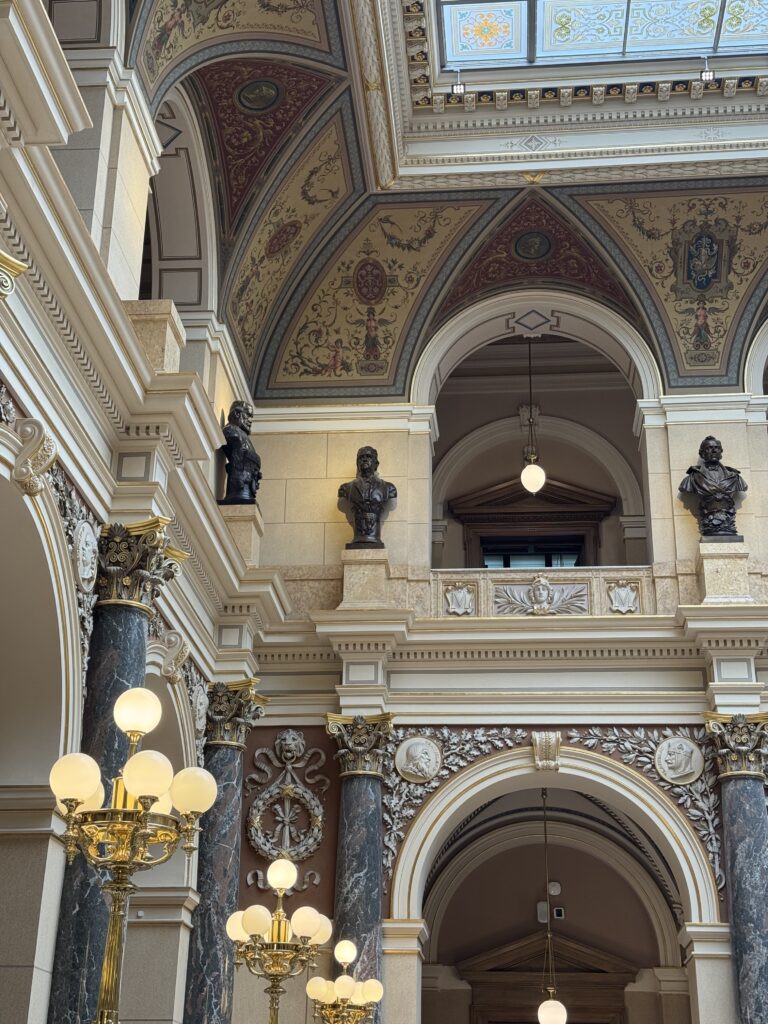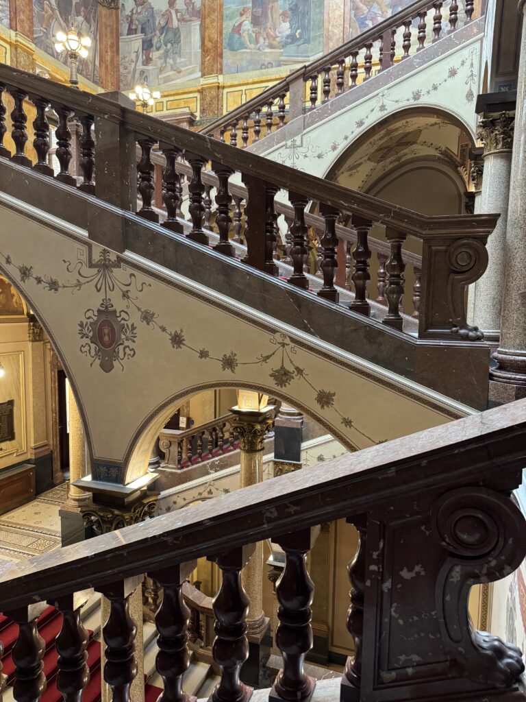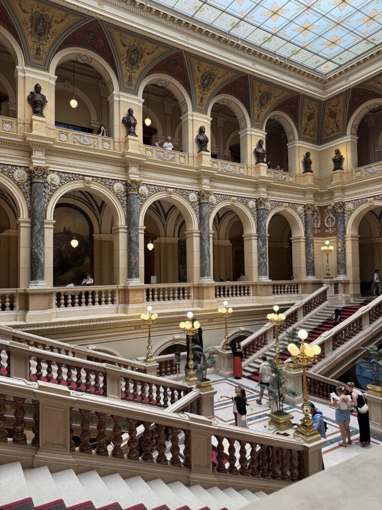 When I got off the metro, I stumbled right into the National Museum. I stashed my backpack and jacket in a locker near the main door after buying a ticket. The entrance of the building is impressive, with staircases leading you up and down and through the building’s central room. There was plenty to see, so much that my legs gave out before my interest in the exhibits.