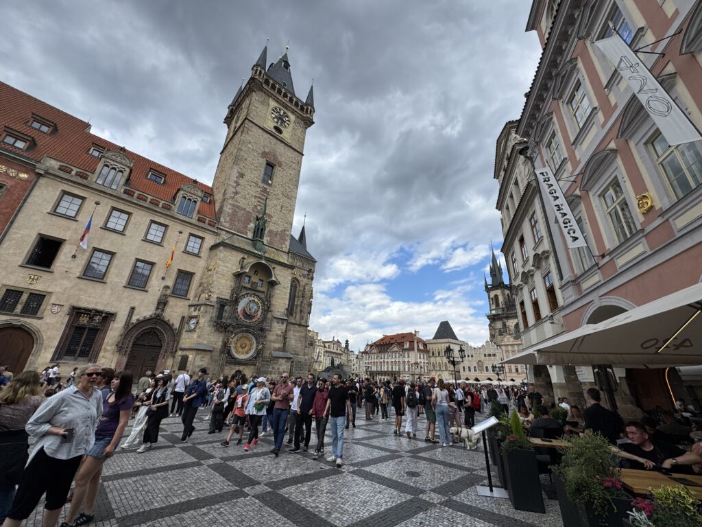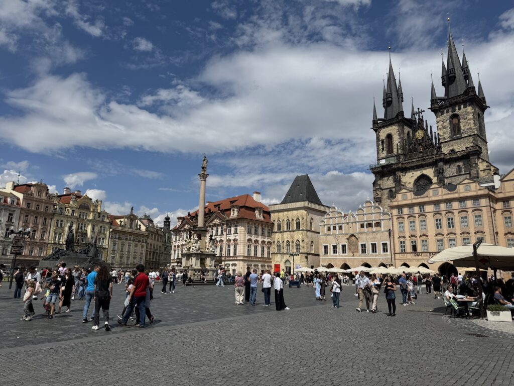 The Old Town Square is charming. Like so much of Prague, you’ll see European architecture at its best. There are restaurants, street vendors, churches, and gift shops surrounding a monument in the center of the square. I found a bench and sat a while to take in the sight.