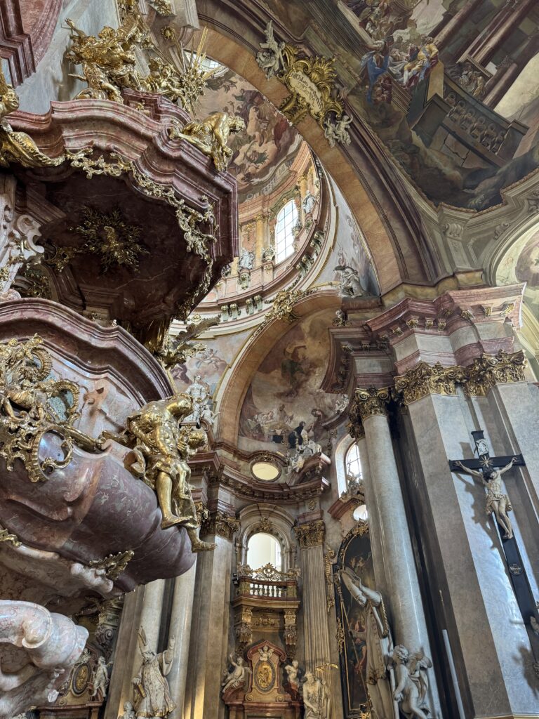 St. Nicholas Church has one of the most beautiful interiors I have seen to date. I know that they never do, but the pictures really don’t do the building justice. I would love to go to church and sit in a building like that every week. Besides being beautiful and older than America, St. Nicholas is known for its beautiful organ, which Mozart once played.