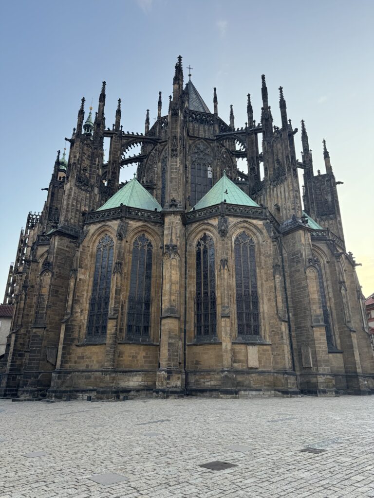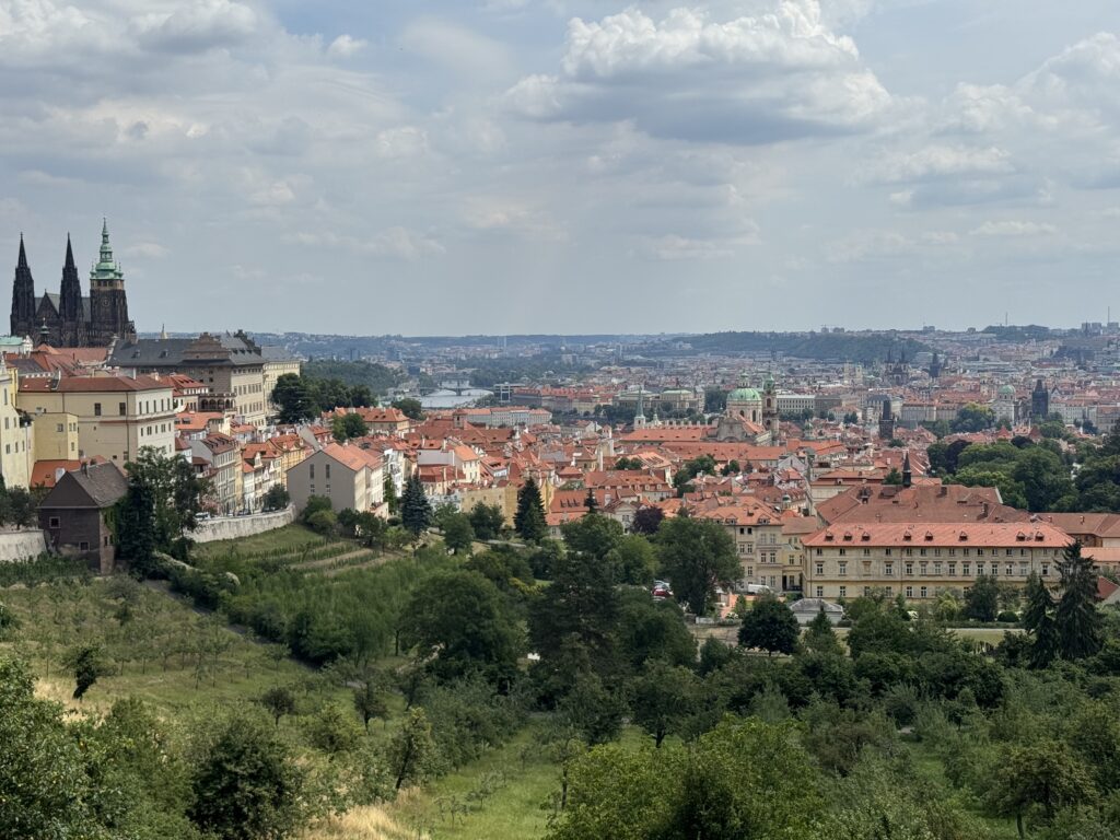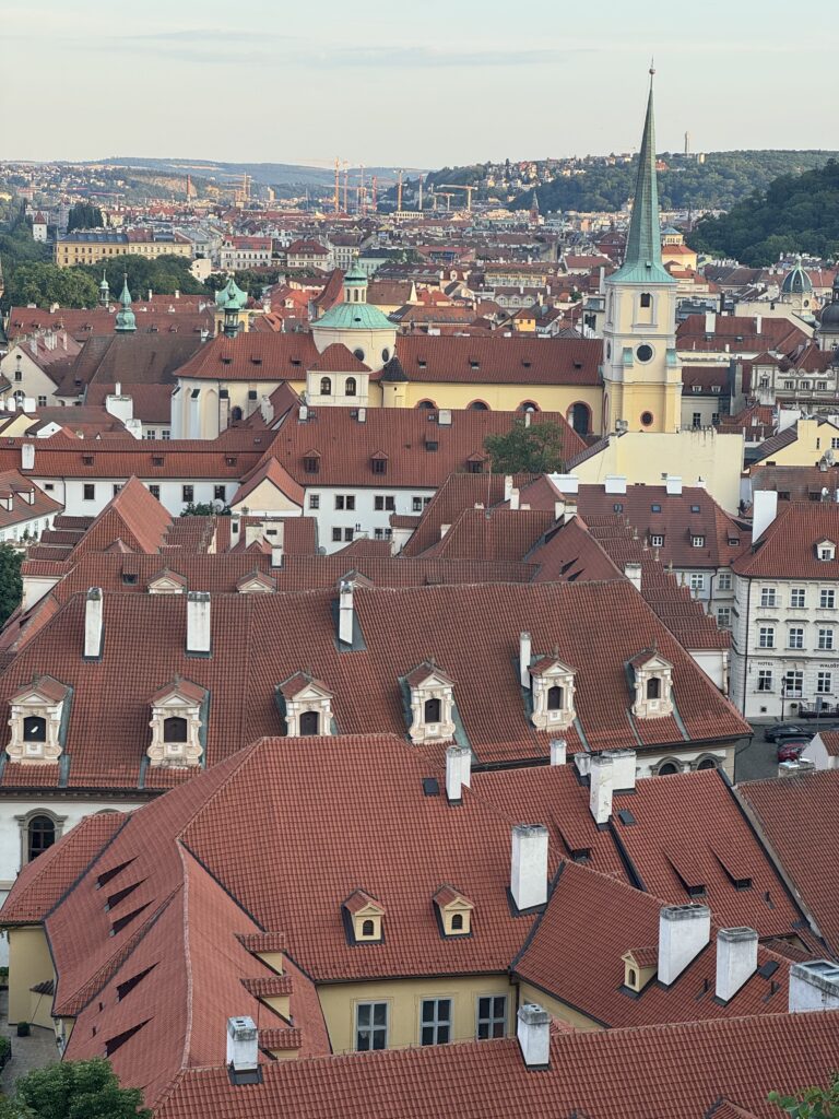 Prague Castle sits on a hill overlooking the city and feels more like a fortified village than a single building. Inside the complex, you’ll find courtyards, historic palaces, and the striking St. Vitus Cathedral. At the castle, you’ll have sweeping views of Prague below. I can still remember looking down on the terracotta shingles and the green patina of the copper spires covering the buildings of Prague. Prague really is a beautiful city.