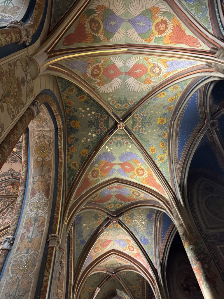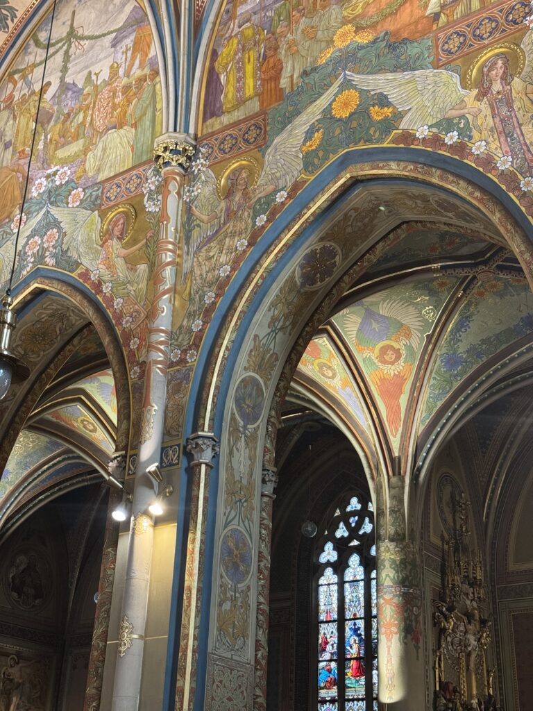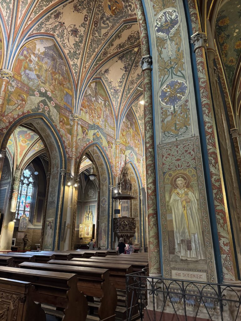 Vyšehrad is a historic fort overlooking the Vltava River with a cemetery where many famous Czech artists are buried. Saints Peter & Paul Basilica is the main attraction now, and is absolutely worth visiting, even if you have church fatigue already. The interior of the church is striking. I found the color palette both unusual and unusually elegant. The gaudiness common in similar buildings is largely absent and is instead replaced by surprisingly suave and graceful design choices.