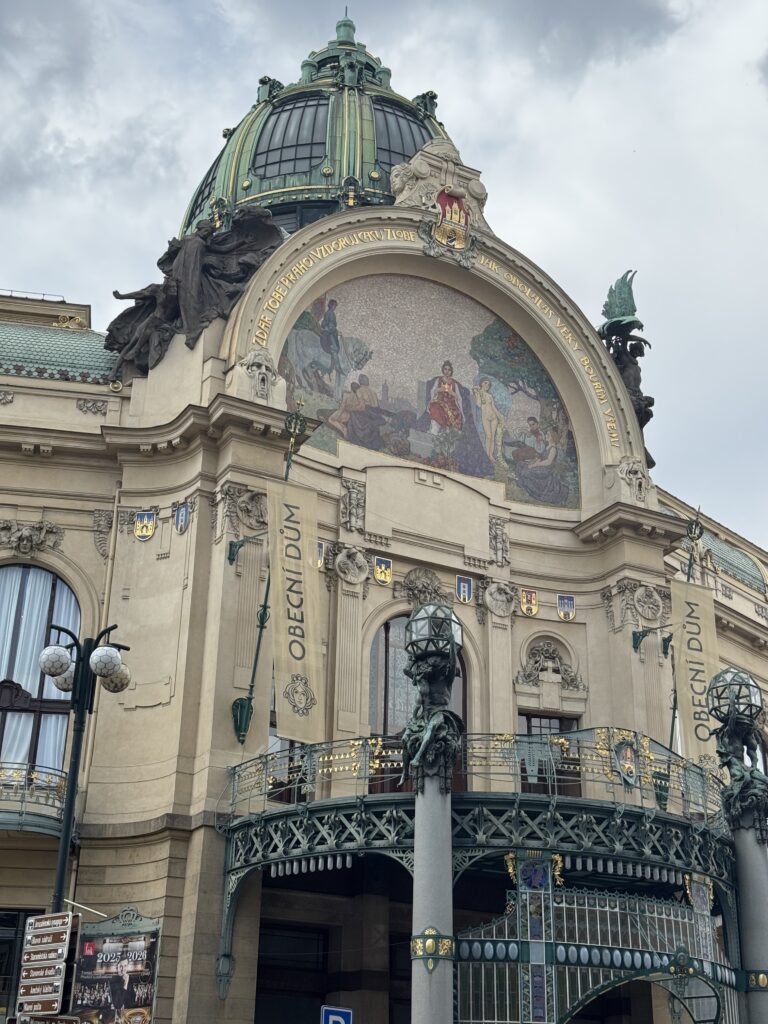 The Municipal House is a stunning Art Nouveau building in Prague where you can go to watch shows. I regret not seeing some kind of show at this venue now. The massive fresco on the front of the building is super cool.