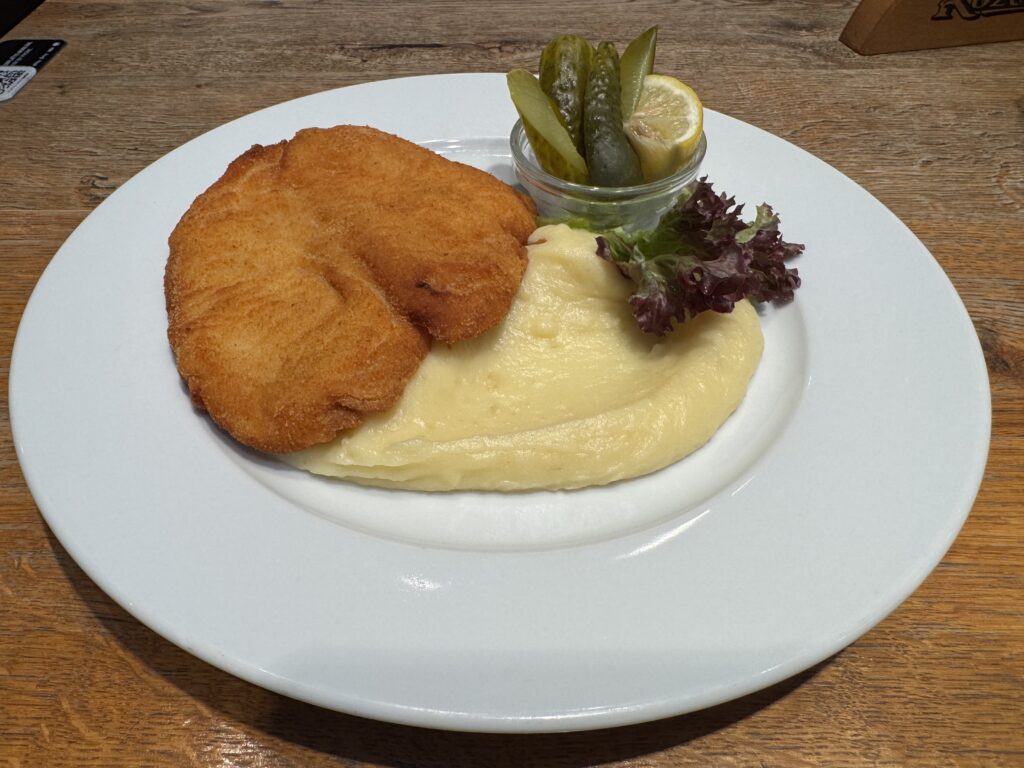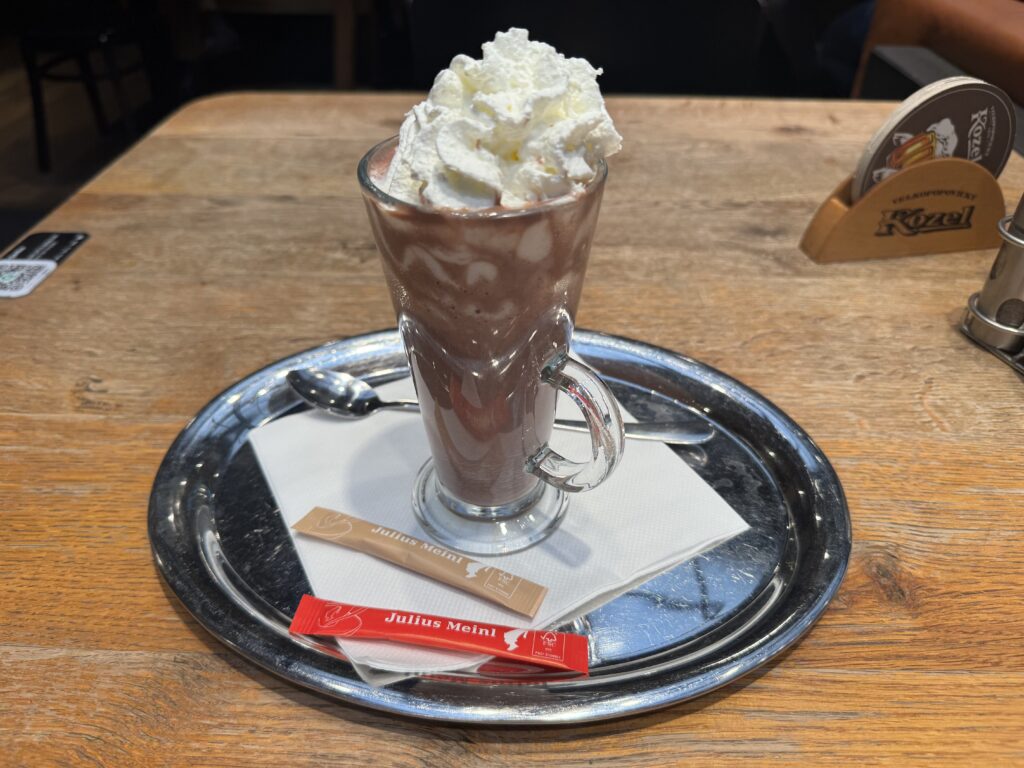 For dinner, I went to a restaurant right next to my hostel called Kozlovna U Paukerta. I ordered shnitzel with potato puree and a hot chocolate for dessert. I liked everything!