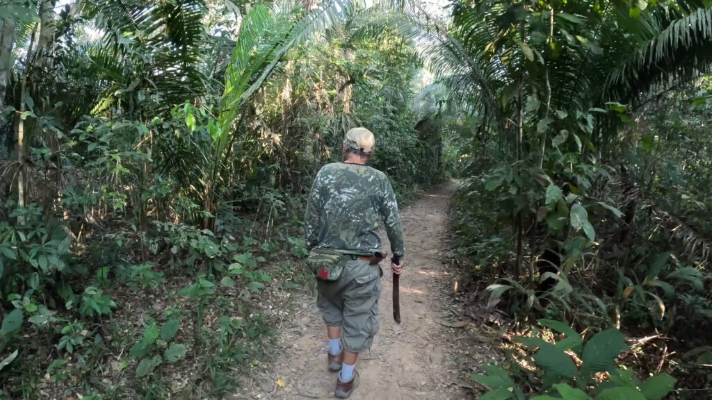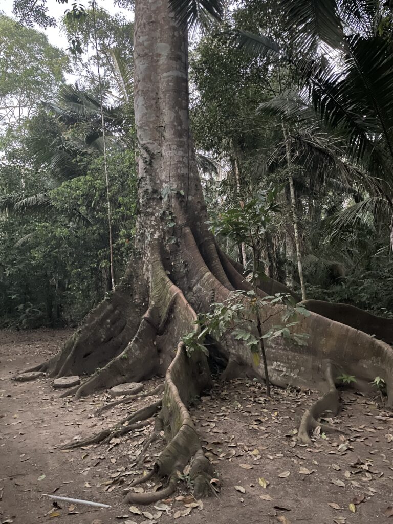 From the lodge, we set out on a nature walk as a group. We walked past the soccer field and the ayahuasca hut into the forest.