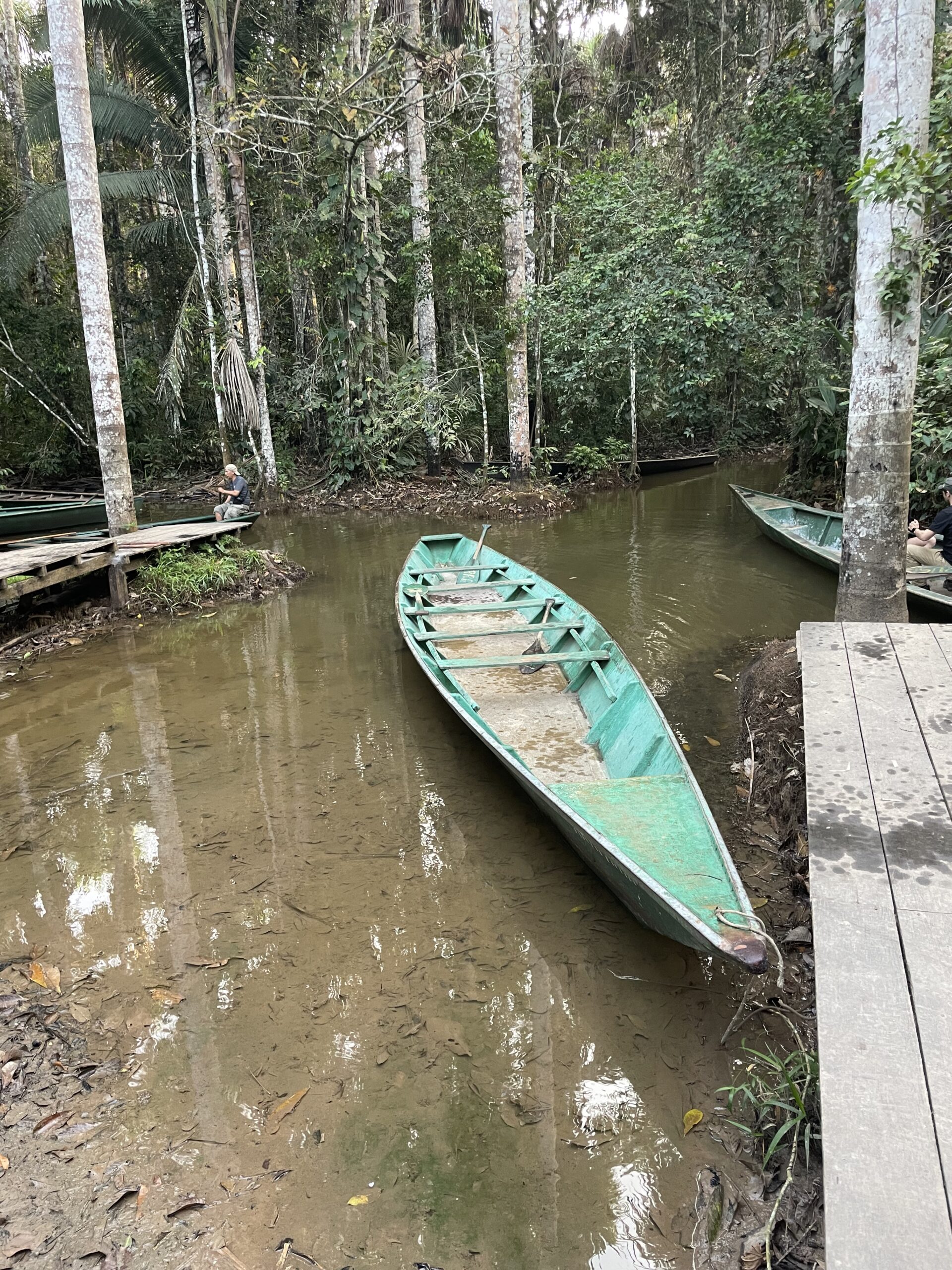 We saw groups of squirrel monkeys and capuchins traveling together, foraging for food in the trees near the water. Yan let us borrow his binoculars for much of the trip. He pointed out bats nesting on a tree trunk and many birds in the trees. One strange bird we saw a lot was the hoatzin. It can’t fly well and instead waddles along tree branches, eating leaves. It’s so weird, look it up.