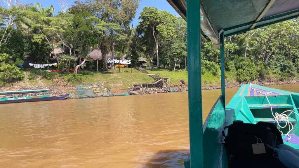 Corto Maltes is an ecoresort built on the banks of the Madre de Dios River in the Peruvian Amazon. It can only be accessed by boat from Puerto Maldonado. The boat ride to get there takes around 20 min each way, but doesn’t feel terribly far. There are many such resorts along the river’s edge, I saw on the ride over.
